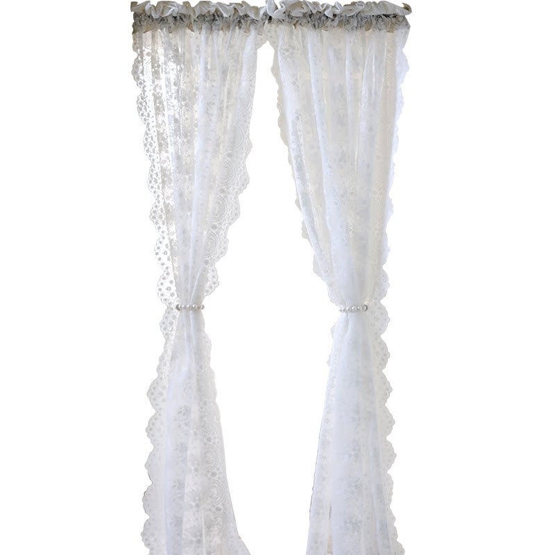 淘法式蕾丝奶油风双层纱帘公主窗帘小窗户儿童房免打孔安装门帘隔断