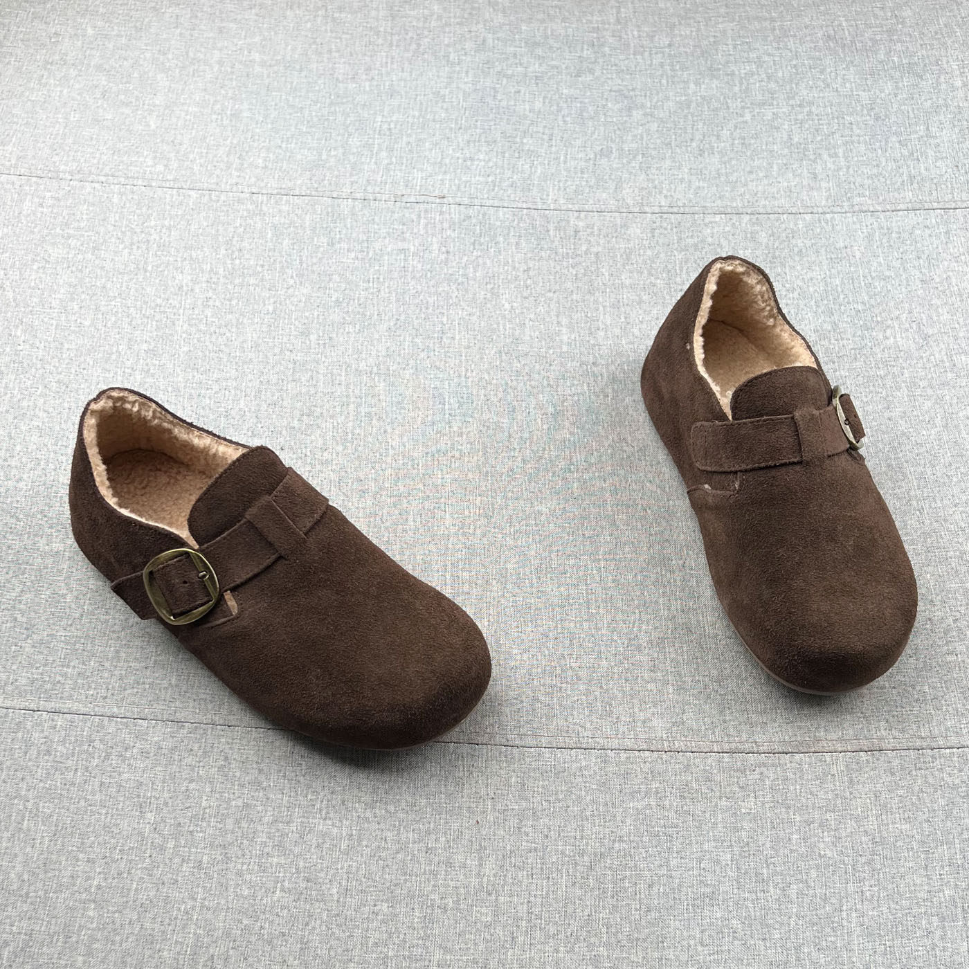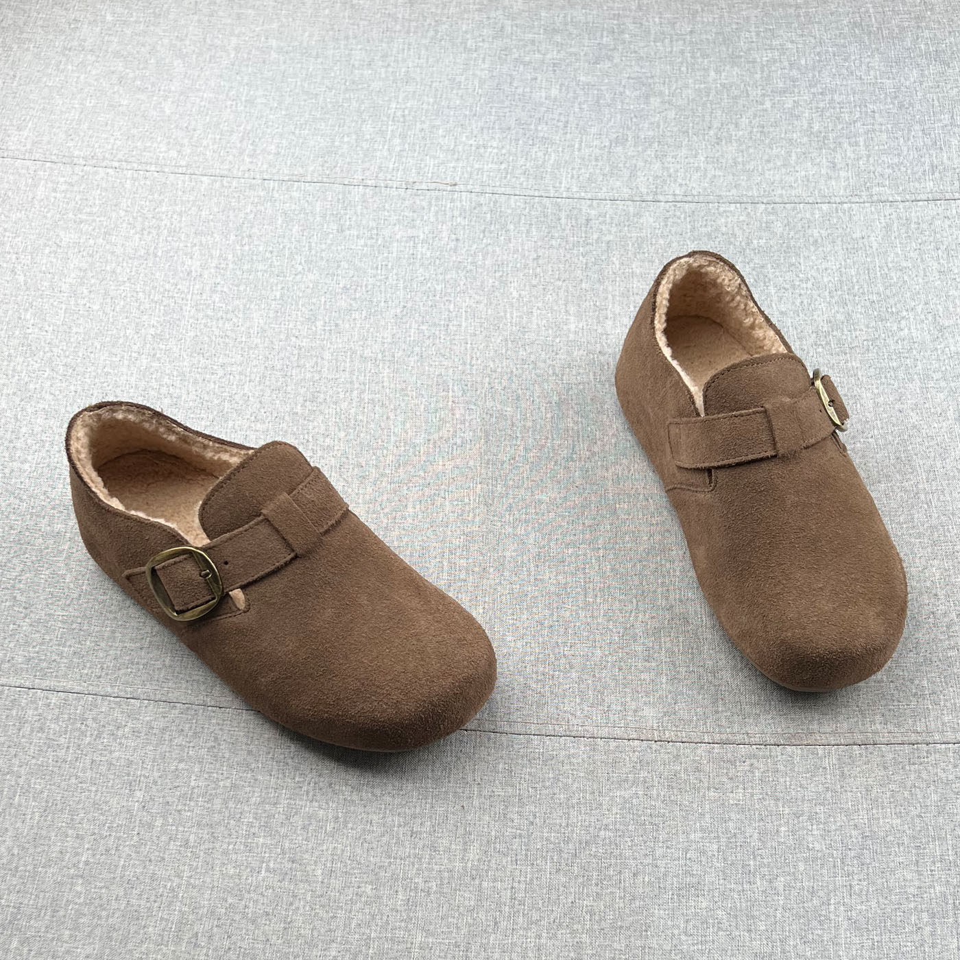 淘宝米新款~真皮羊羔绒保暧平跟勃肯鞋2025年冬款防滑底加毛豆豆鞋