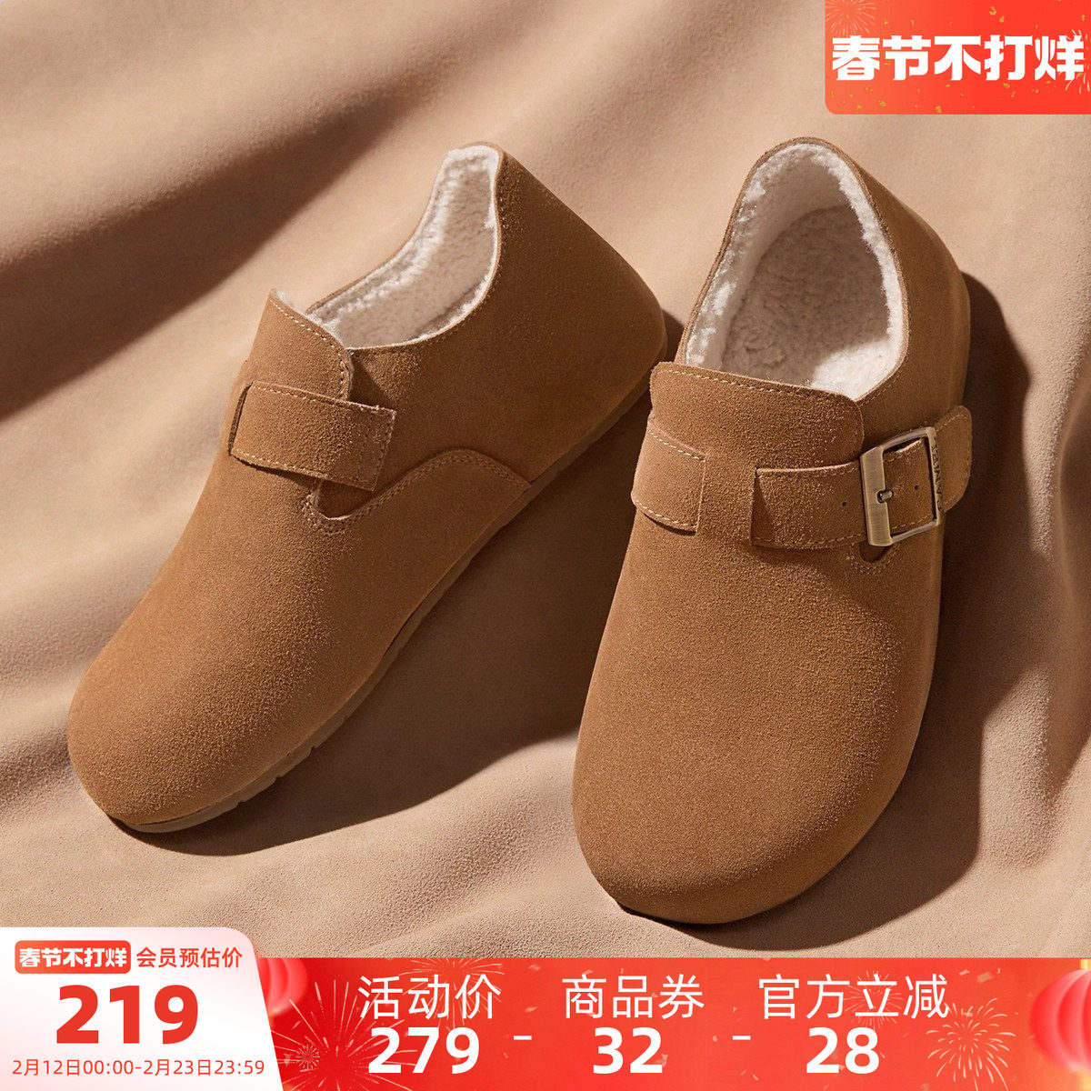 星期六舒适加绒豆豆鞋真皮勃肯鞋女鞋2025冬季新款保暖毛毛鞋单鞋