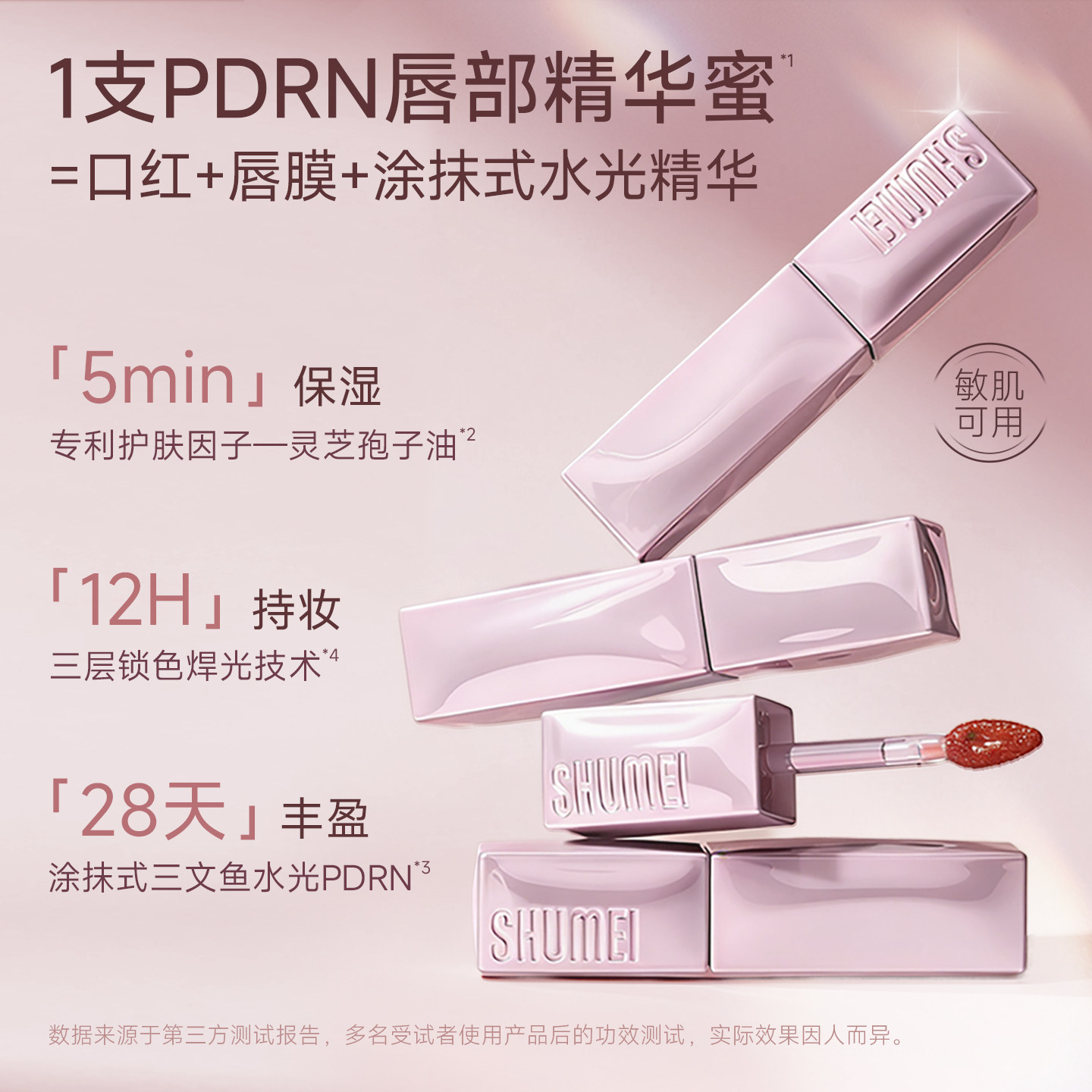 【新品上市】小树美PDRN丰唇精华蜜,集唇蜜、唇釉、唇膏于一体,打造镜面水光粉嫩双唇。蕴含珍贵PDRN成分,深层修护唇部肌肤,改善干燥细纹,持久保湿不黏腻。轻盈质地一抹即融,呈现自然透亮粉色调,宛如天生好唇色。高光泽镜面效果,瞬间丰盈唇形,立体饱满更显娇嫩。持久锁色不沾杯,日常通勤或约会妆容皆宜。小巧便携设计,随时随地补妆提亮气色。小树美PDRN丰唇精华蜜,不仅是唇部彩妆,更是滋养护理新体验,让你轻松拥有水润嘟嘟唇,绽放自信迷人光彩。