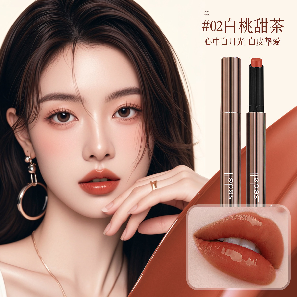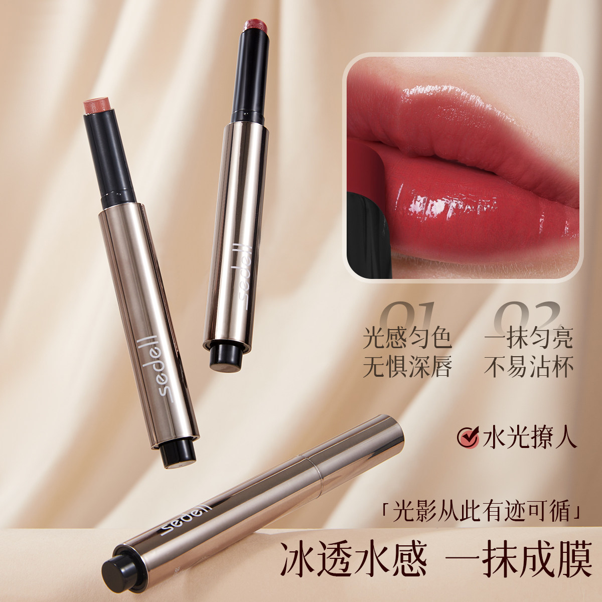 天猫诗黛尔固体唇蜜裸色系口红唇釉不掉色不沾杯镜面水光唇膏女按压式