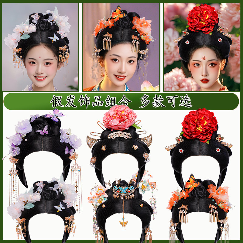 淘宝古风女士整顶头套贵妃唐风汉服假发套影视剧同款一体假发唐朝发饰