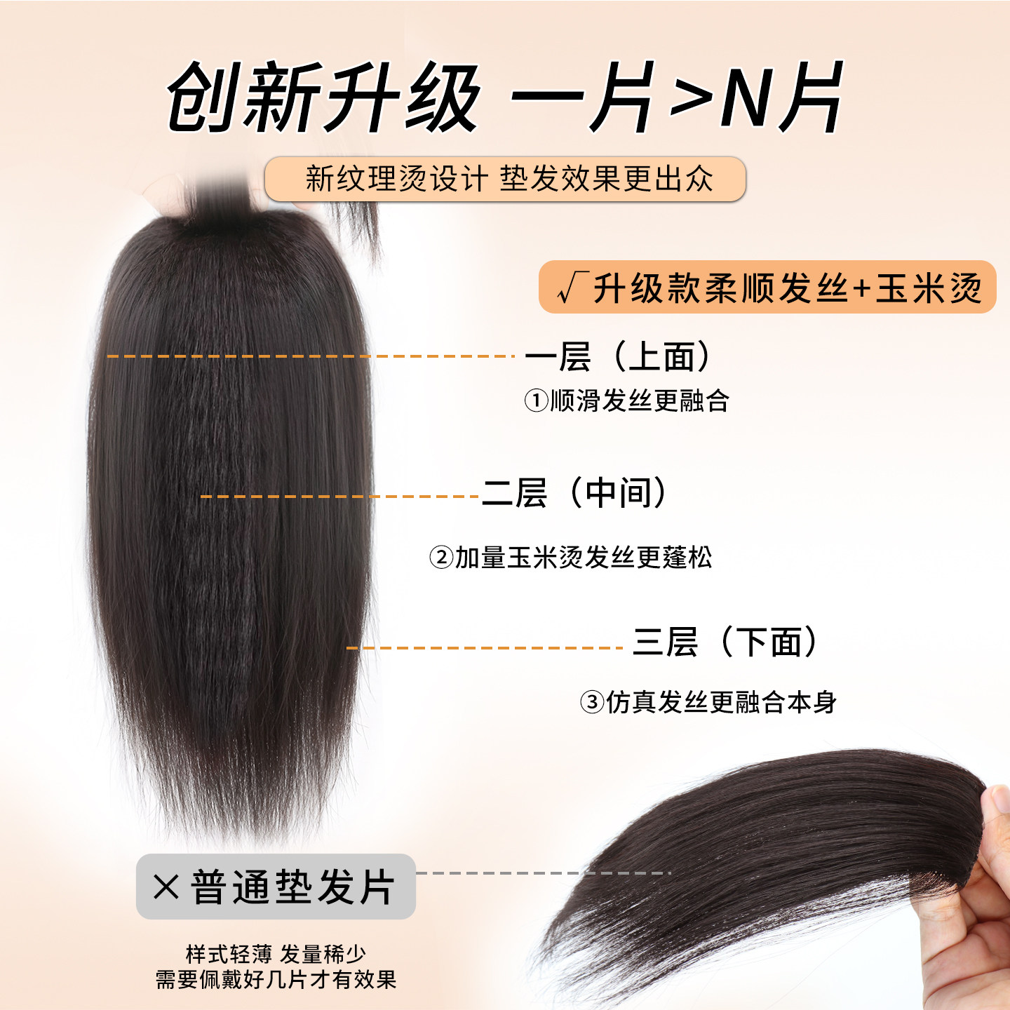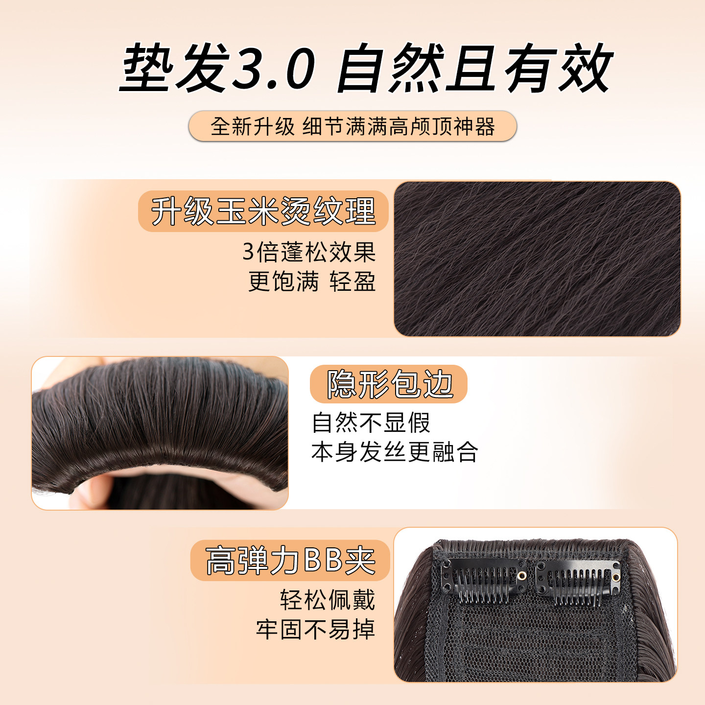 天猫假发片头顶补发增发量蓬松玉米烫纹理高颅顶垫发片后脑勺扁头神器