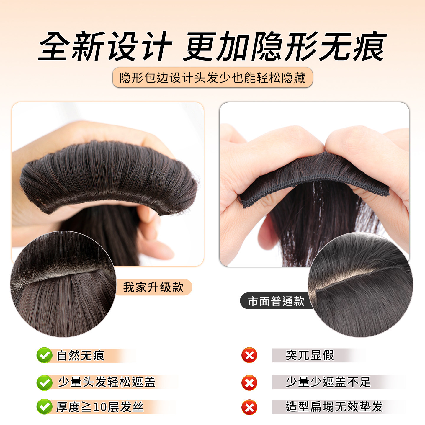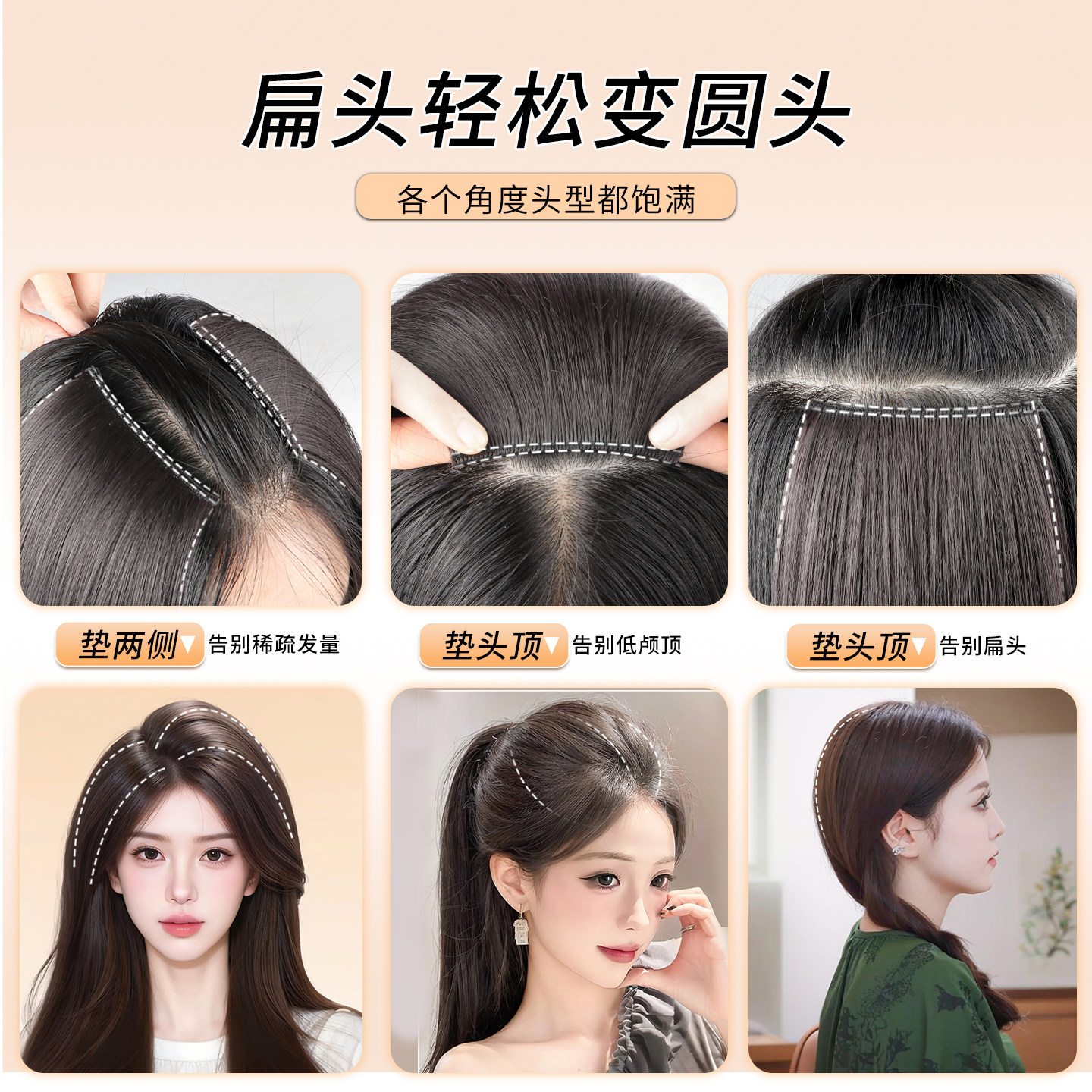 假发片女头顶垫发片补发蓬松颅顶两侧增发量隐形垫发根小千代真发
