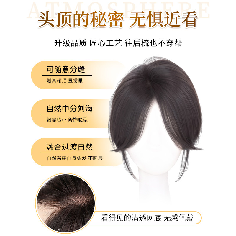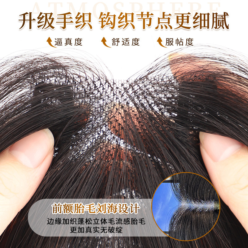 八字刘海假发女片头顶含真发无痕补发遮白发蓬松增发量高颅顶假发