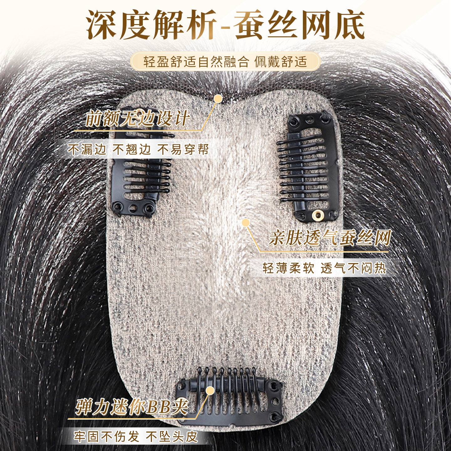 天假发片女头顶垫发片补发蓬松颅顶两侧增发量隐形垫发根小千代真发