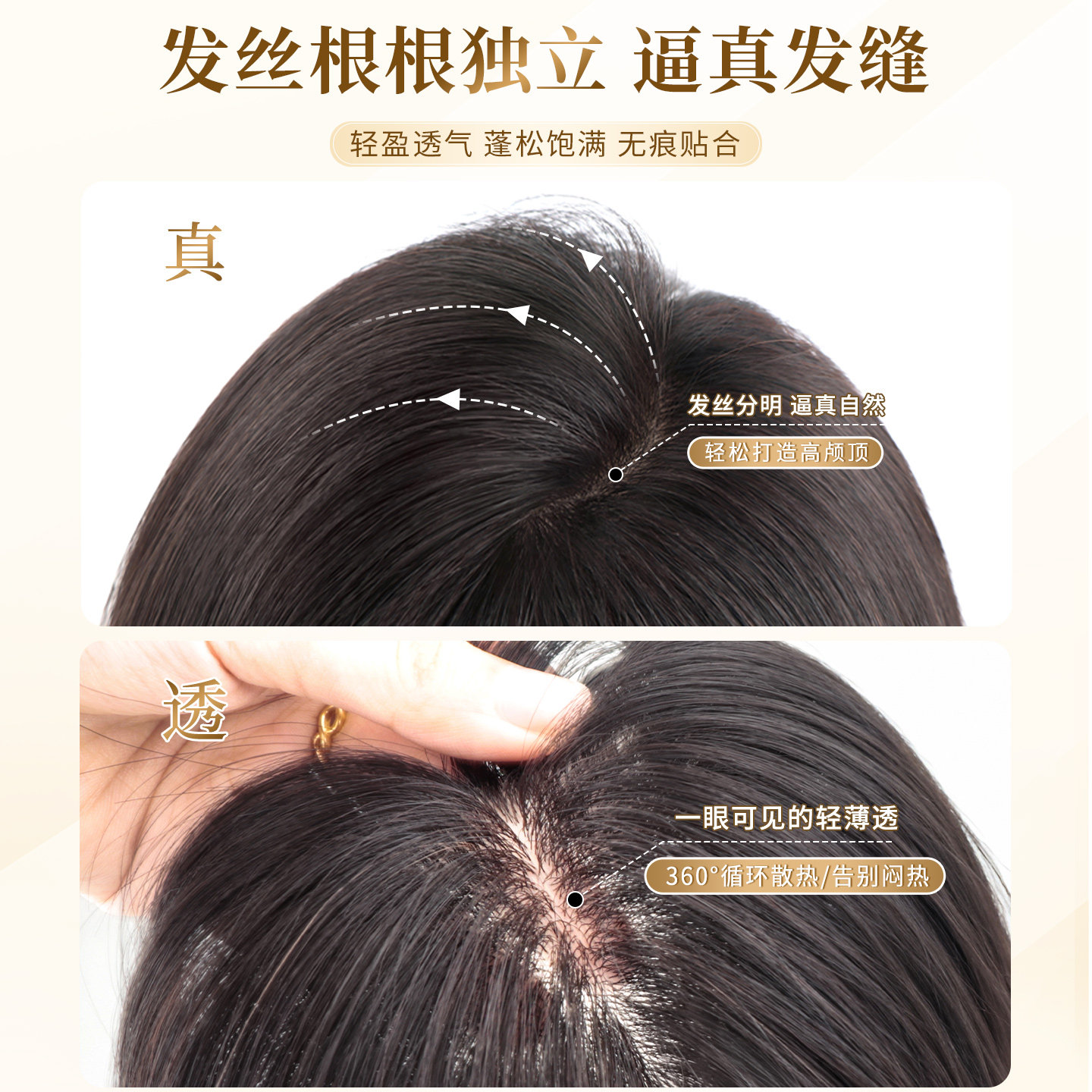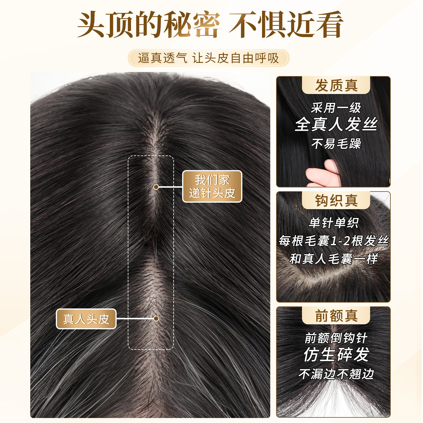 假发片女头顶补发蓬松遮白发轻薄款自然隐形手织一片式全真发发片