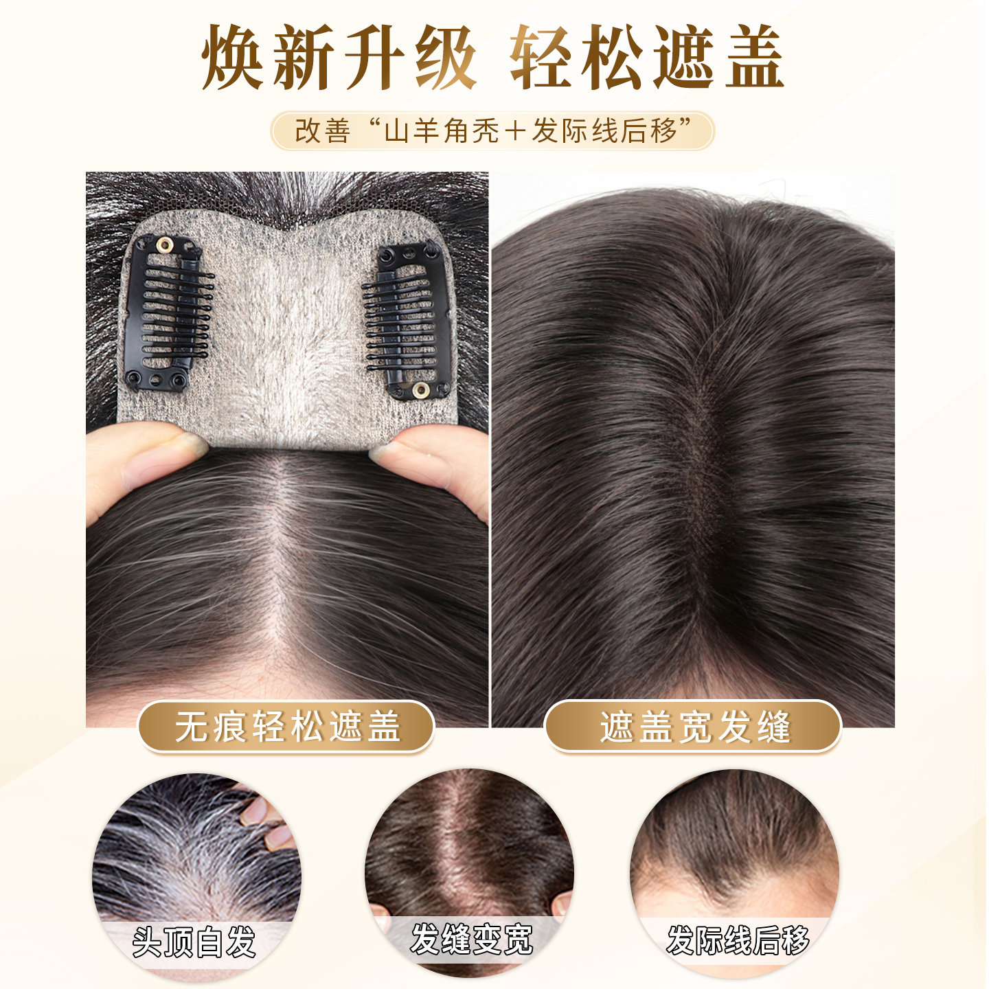 假发片女头顶垫发片补发蓬松颅顶两侧增发量隐形垫发根小千代真发