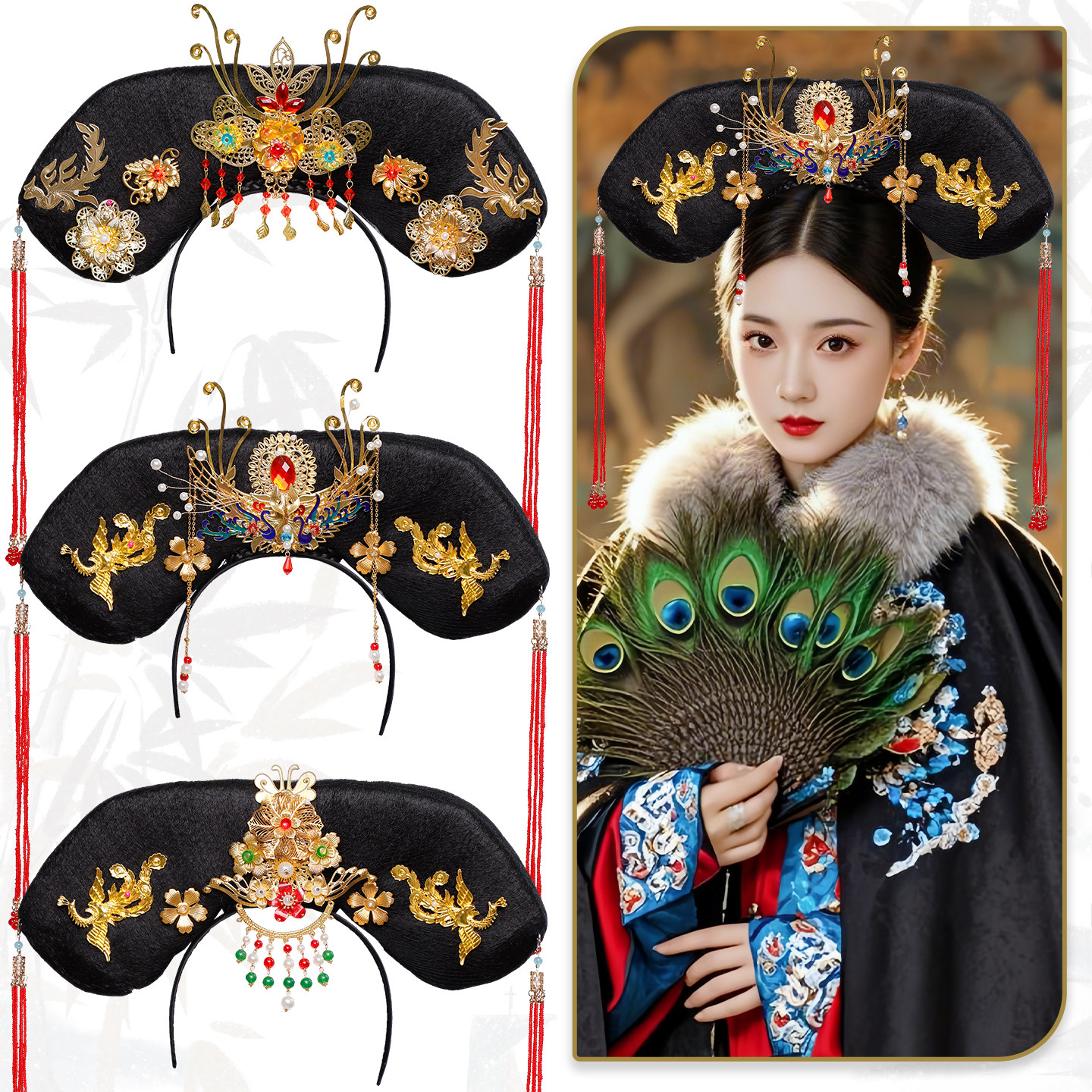 天猫旗头头箍复古感宫廷风气质古风娘娘贵妃皇后头饰古装格格发箍旗头