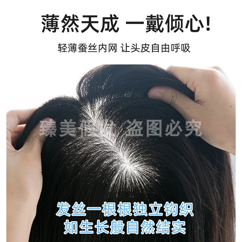 假发片女头顶补发蓬松遮白发轻薄款自然隐形手织一片式全真发发片