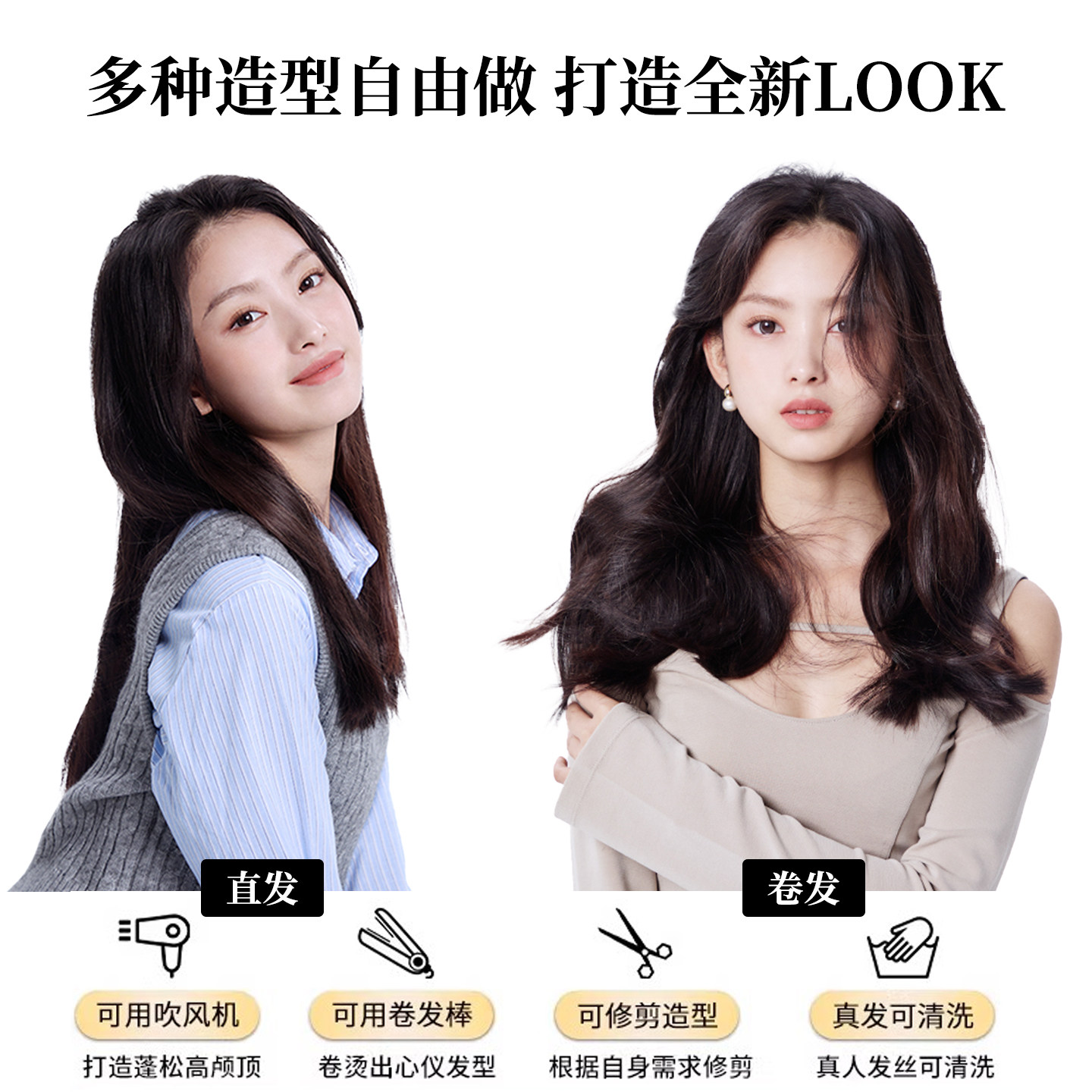 天不用戴发网假发女片头顶仿真发增发量无痕蓬松高颅顶高层次长直发