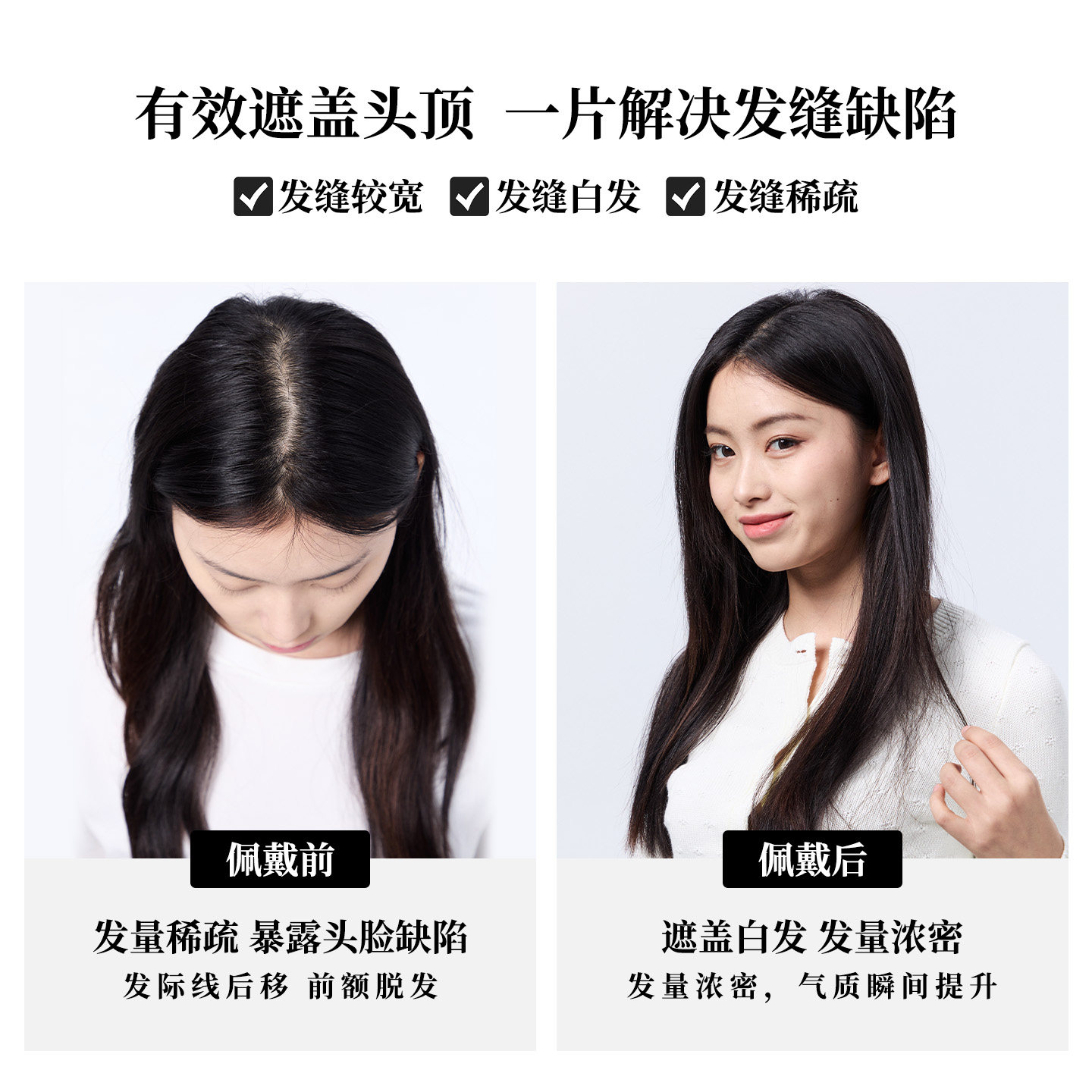 天假发片女头顶垫发片补发蓬松颅顶两侧增发量隐形垫发根小千代真发