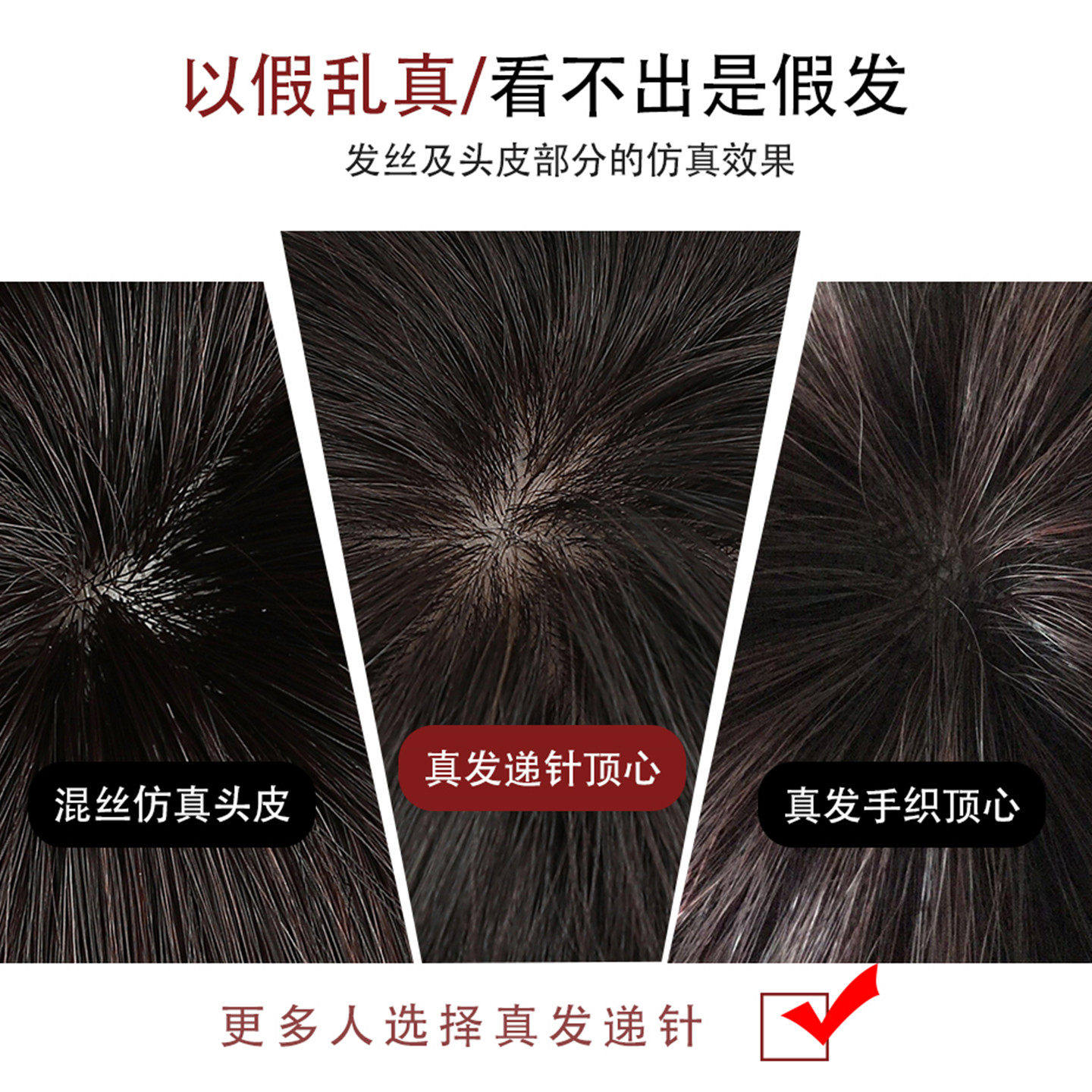 递针假发女片头顶真发遮白发增发量蓬松高颅顶无痕隐形自然补发片