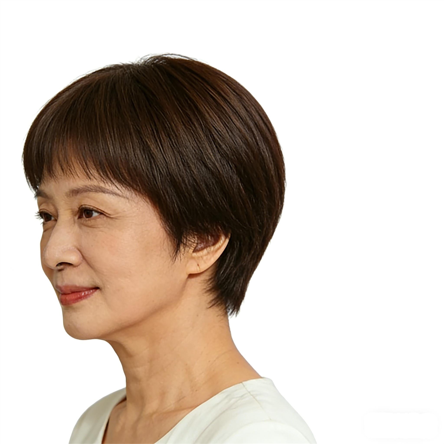 这款女士全头套假发采用100%真人发丝精心制作,发丝柔顺自然,光泽度佳,触感真实。短直发设计简约大方,贴合头型,修饰脸型,特别适合中老年妈妈佩戴。整体采用轻薄透气网底,佩戴舒适不闷热,长时间使用也无负担。内层配有可调节搭扣,适合不同头围,稳固不易滑落。发际线自然仿真,前额微卷处理更显年轻气质。无需频繁打理,日常梳理即可保持造型。无论是日常出行、聚会还是拍照,都能轻松展现优雅自信的形象,是妈妈辈追求自然美观的理想选择。