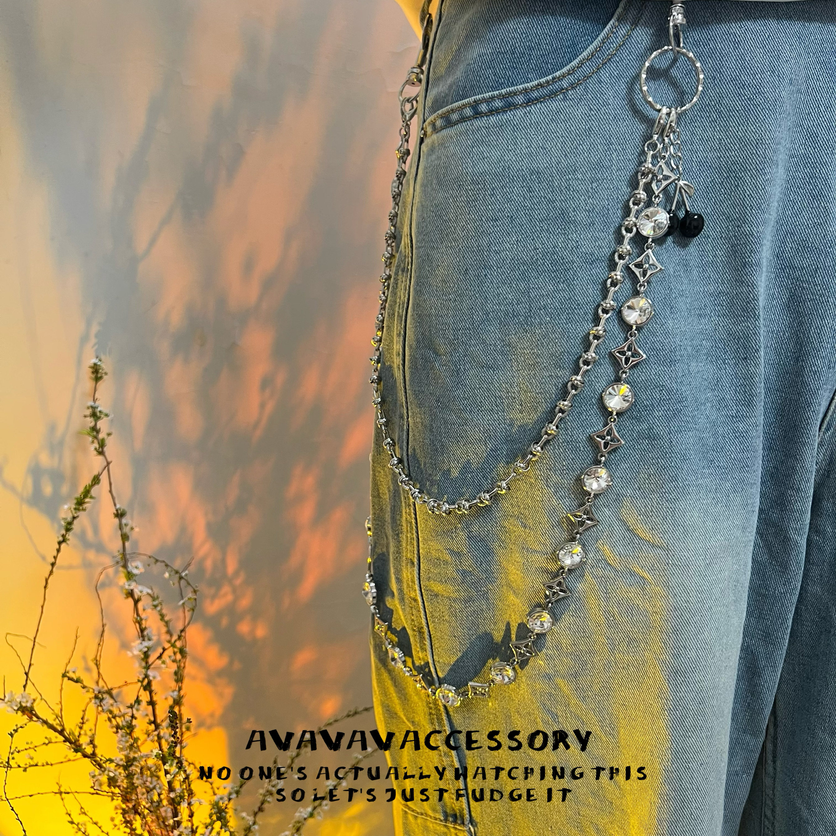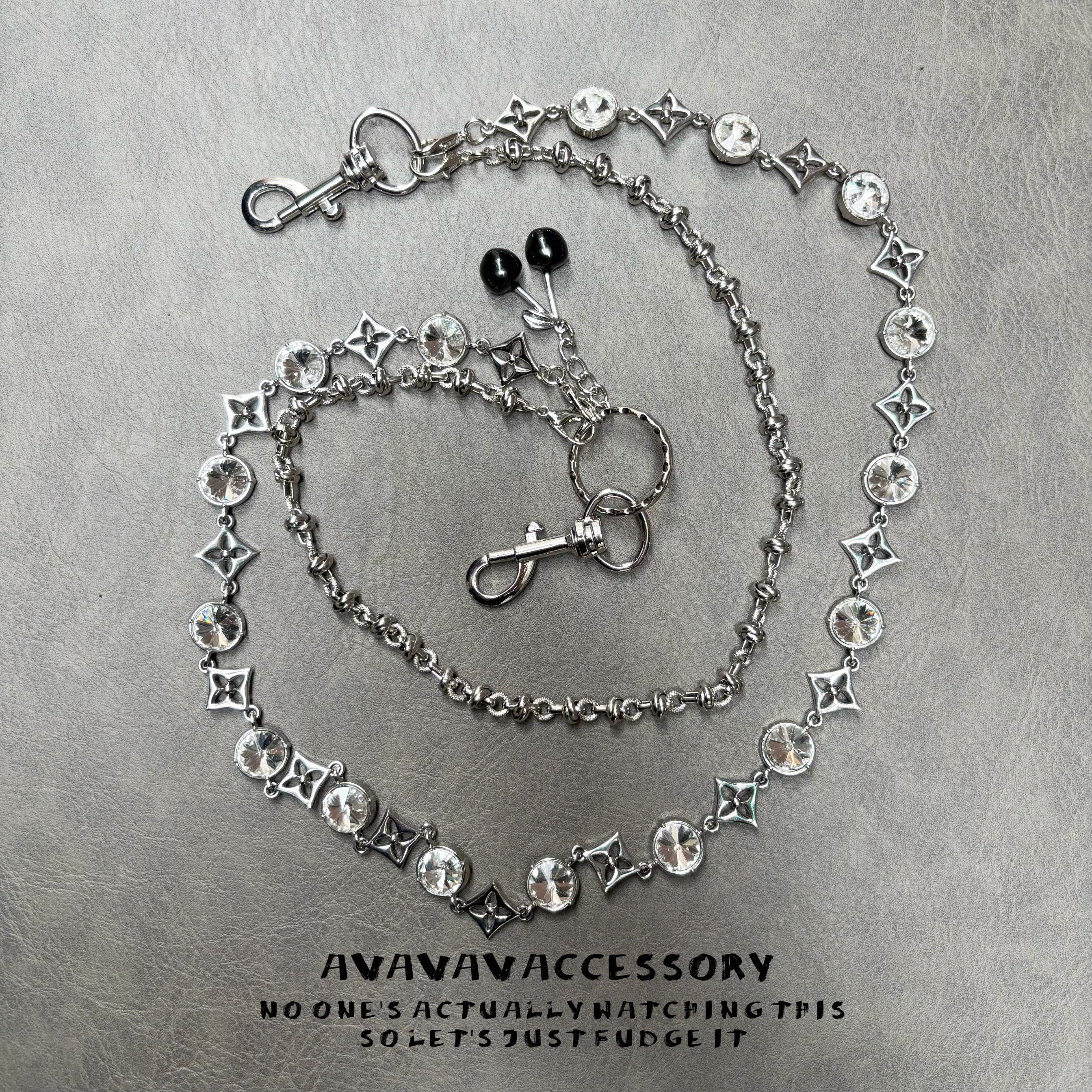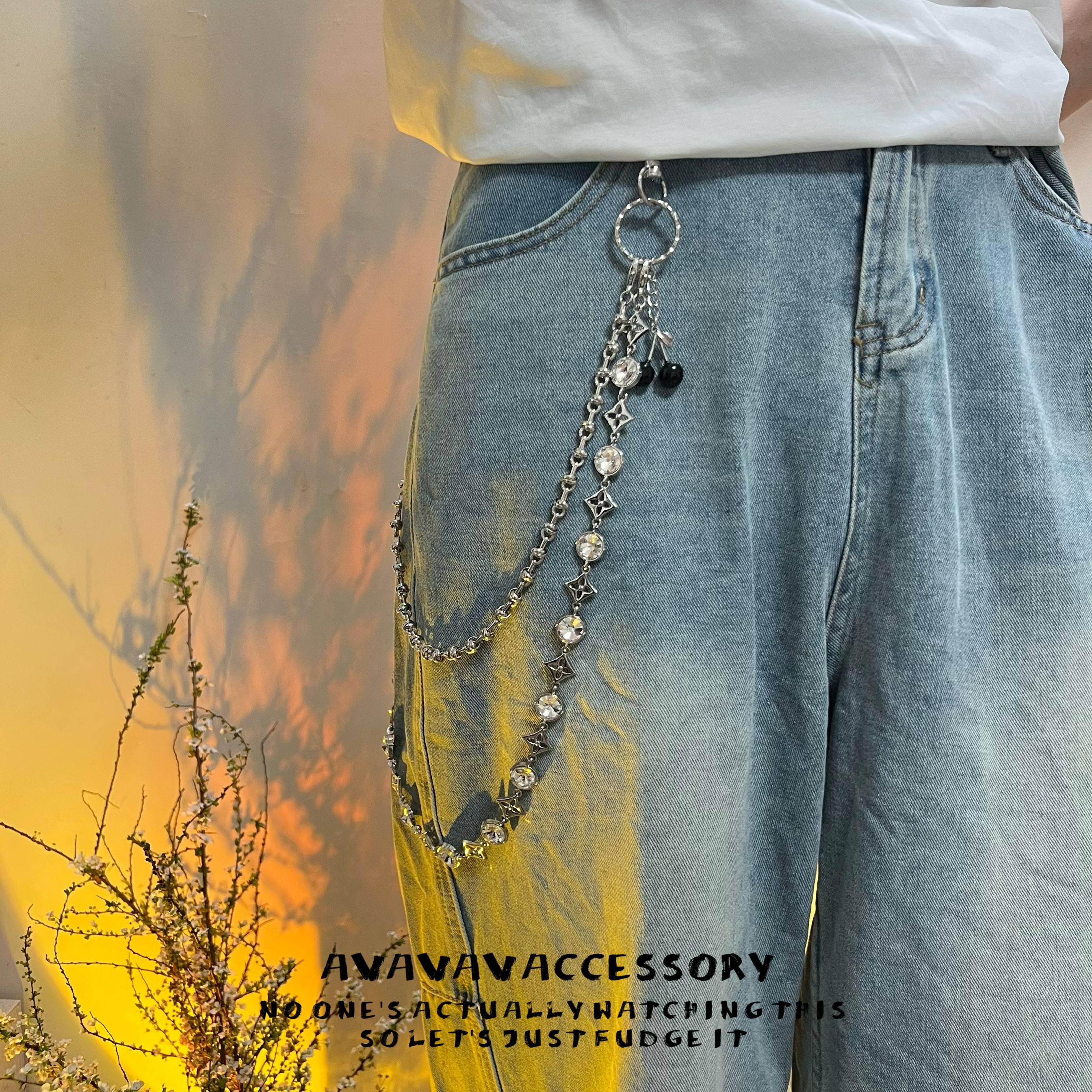 AVAVAVA 闪银宽四叶草cleanfit银宝石牛仔裤裤链男女腰链包包挂链