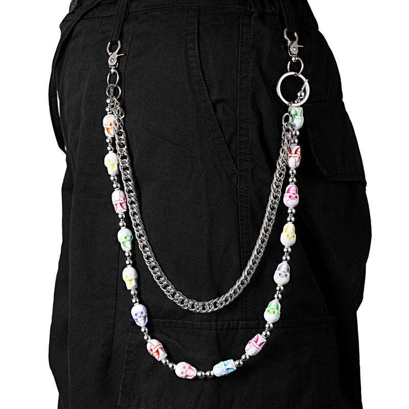 淘原创彩虹色珍珠裤链配饰嘻哈y2k高街腰带小众挂饰腰链配饰辣妹潮