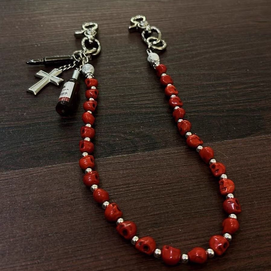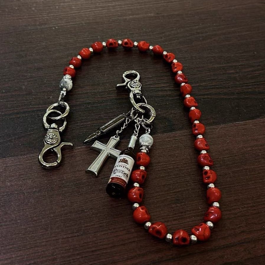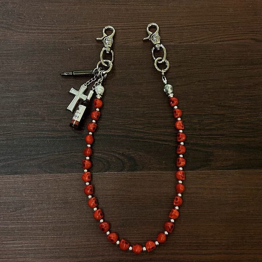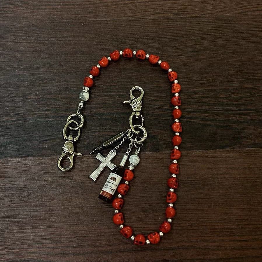 淘宝新款红骷髅复古十字架酒瓶朋克街头腰链牛仔裤潮嘻哈裤链
