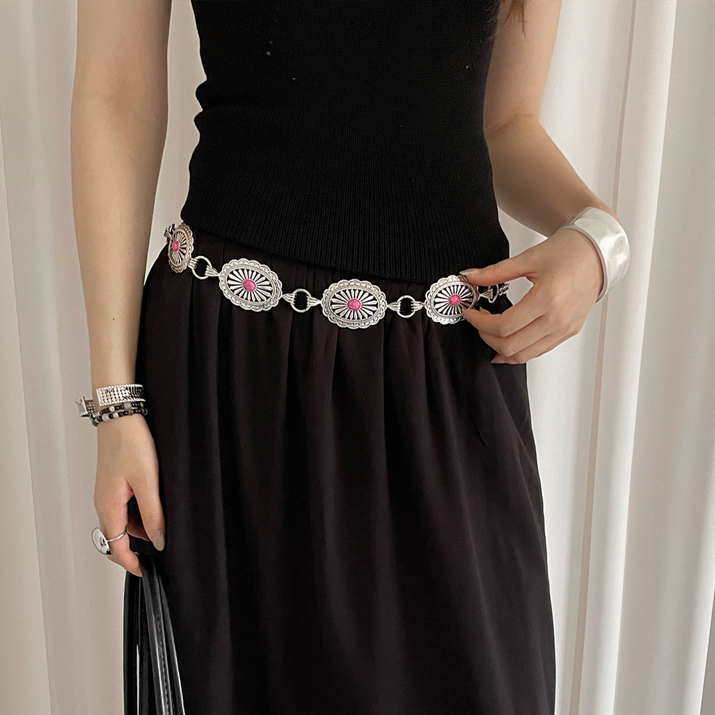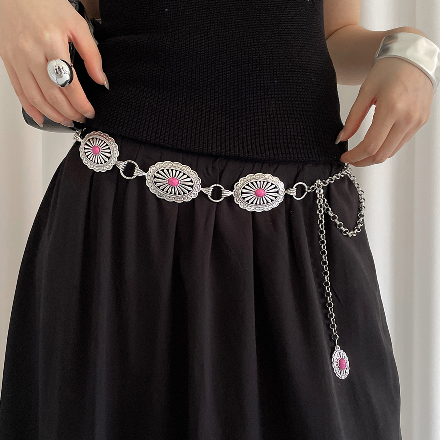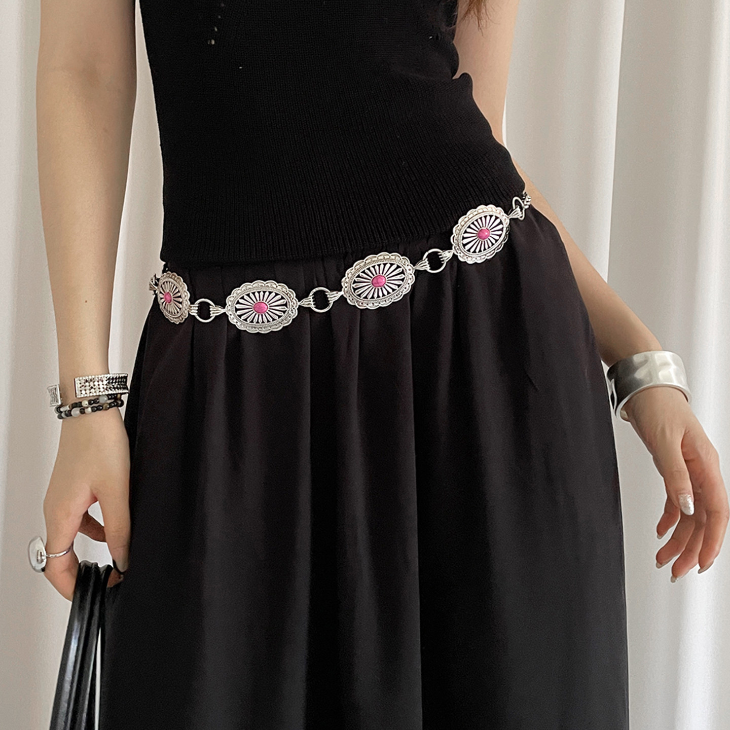 这款高级感复古民族风镂空金属腰链,融合传统工艺与现代设计,以精致镂空花纹勾勒出浓郁的异域风情。采用优质合金材质,光泽细腻,质感高级,轻盈佩戴不压身。无论是搭配飘逸长裙、修身牛仔裤,还是作为礼服点缀,都能瞬间提升整体造型的层次与格调。收腰设计巧妙修饰腰线,凸显女性优雅曲线,兼具装饰性与实用性。无论是日常出街、度假旅行,还是参加派对聚会,这款腰链都是吸睛亮点,展现独特个性与不俗品味,是追求时尚与艺术感女性的理想配饰之选。