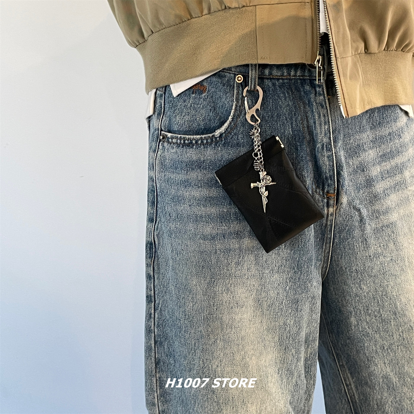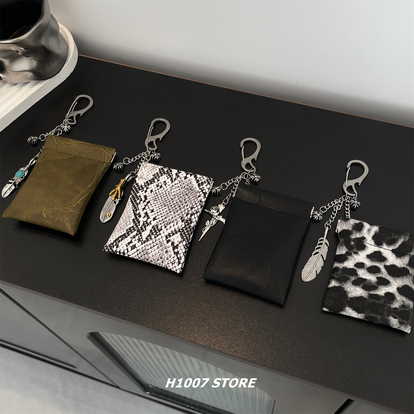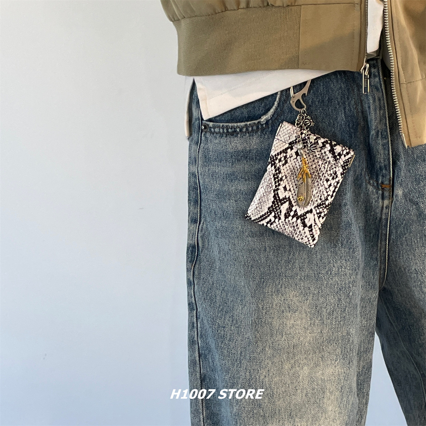 H1007原创蛇纹包羽毛十字花男裤链女腰间挂饰,融合嘻哈潮流与个性设计,是一款兼具实用与装饰性的时尚单品。采用高品质仿蛇纹材质,搭配精致羽毛与金属十字花装饰,视觉冲击力强,彰显不羁态度。可作为裤链、腰间挂饰或零钱卡包使用,轻松收纳卡片、零钱等小物,满足日常出行需求。男女皆宜,适配牛仔裤、工装裤等多种风格,为穿搭增添亮点。无论是街头潮人还是追求个性的年轻人,都能通过这款挂饰展现独特品味,是日常搭配与个性表达的潮流之选。
