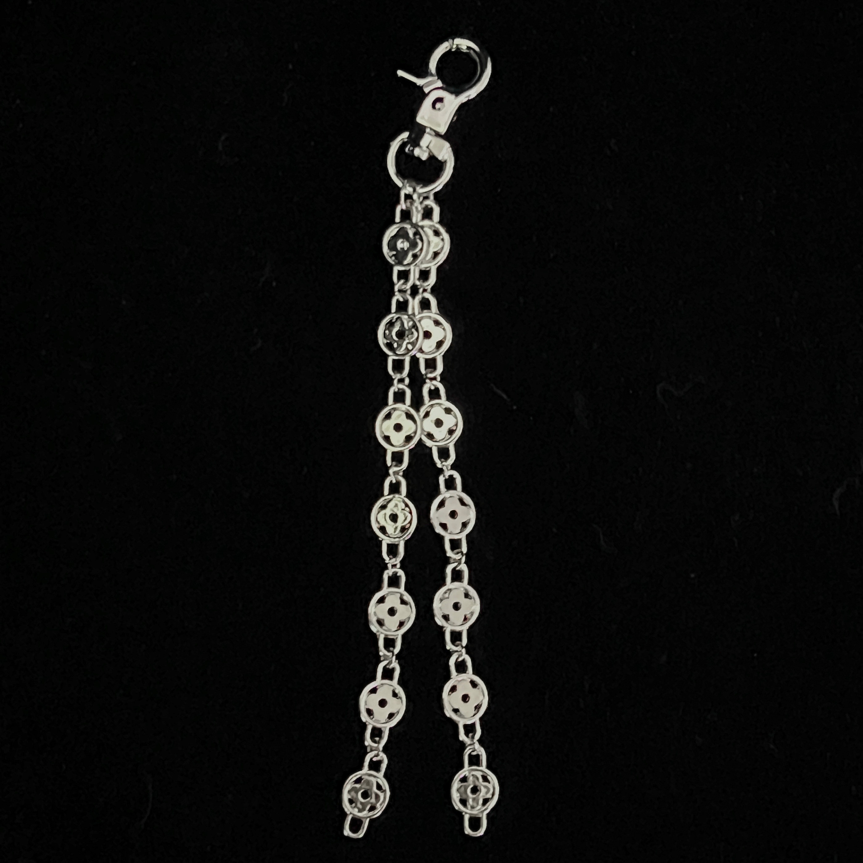 【吴嘉轩同款】Rapeter金属四叶花拼接裤链,以极简设计诠释Cleanfit美学,是小众穿搭的点睛配饰。采用高品质合金材质,经精细打磨与电镀工艺,呈现哑光金属质感,耐用不易褪色。四叶花与链条拼接设计,兼具艺术感与街头气息,可自由搭配工装裤、牛仔裤或束脚裤,轻松提升整体造型层次。作为吴嘉轩同款潮流单品,它不仅是一件实用挂件,更是个性态度的表达。无论是日常出街还是拍照打卡,都能展现低调而不失品味的时尚格调,是追求独特风格的潮流人士必备配饰。