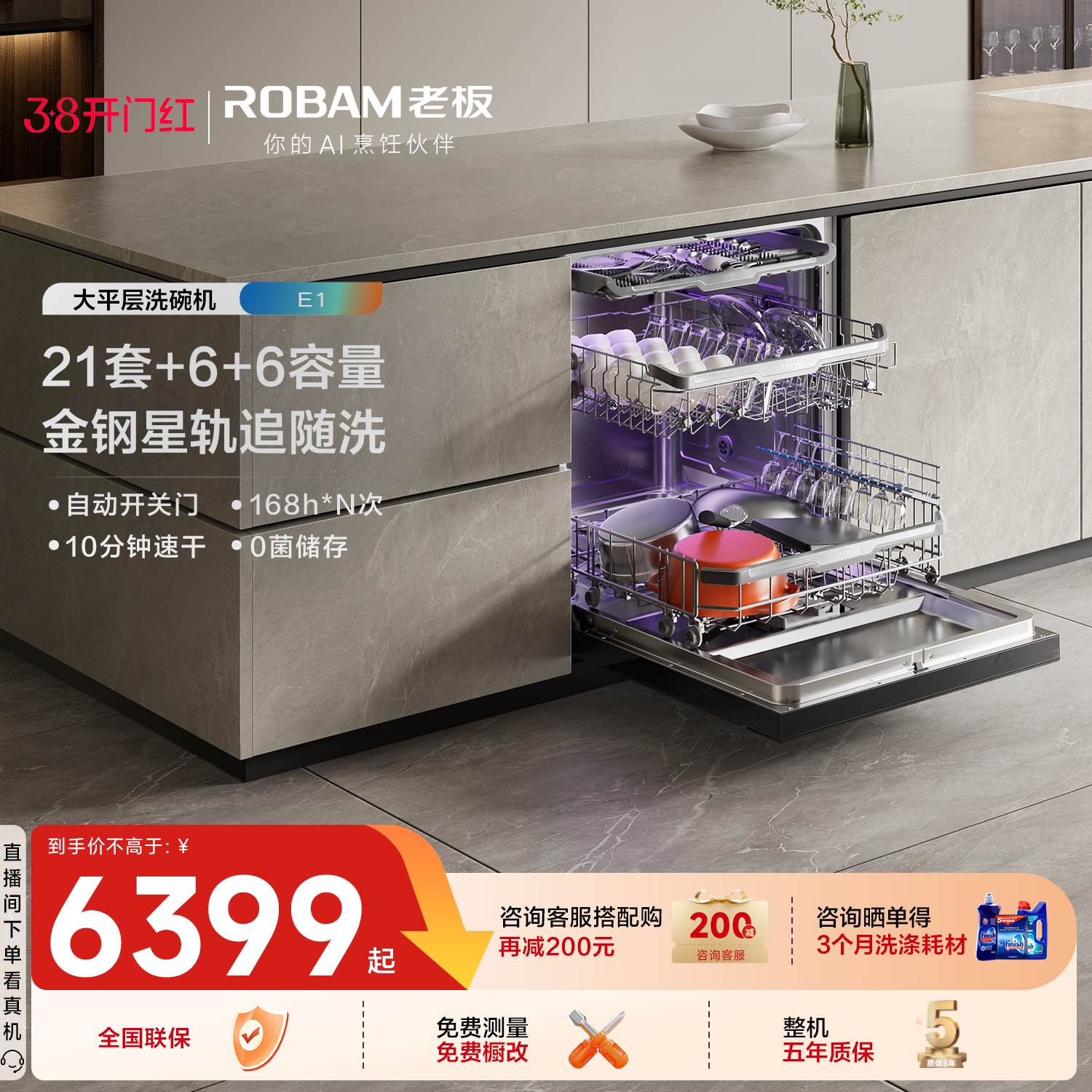 天猫【年度新品】老板21套巨舱E1P-C5/E1洗碗机洗活氧消毒洗/金属追随