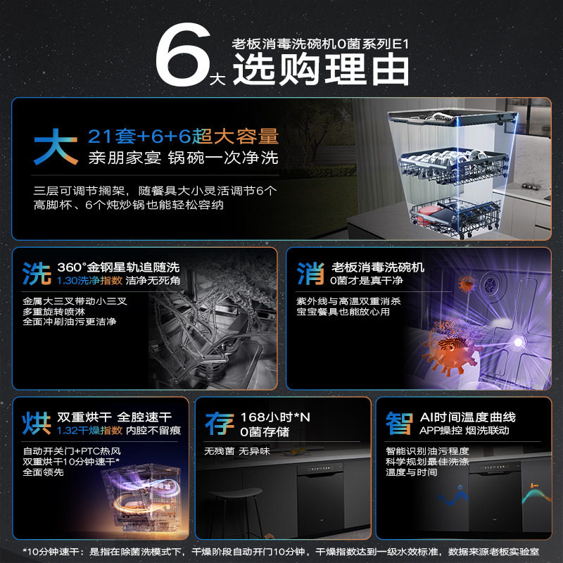 天猫老板新品航母舱E1/E1P黑21套+6+6嵌入式洗碗机独创追随洗独消烘干