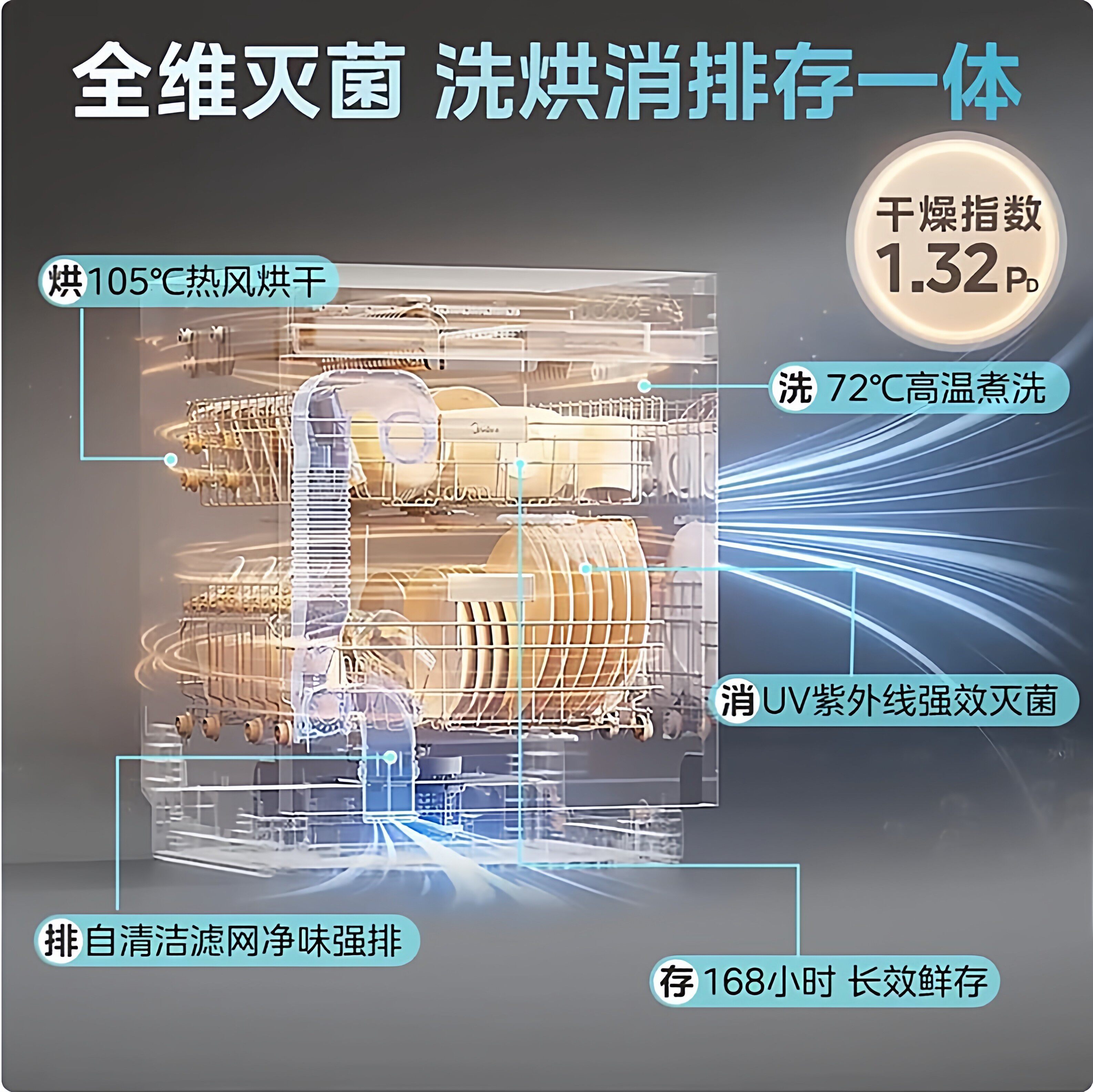 美的洗碗机UP2Pro嵌入全自动家用台式母婴级消毒小型5套一级水效