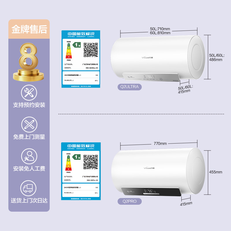 天猫新品万和Q2Ultra电热水器60升出水断电家用储水式50L双管变频速热