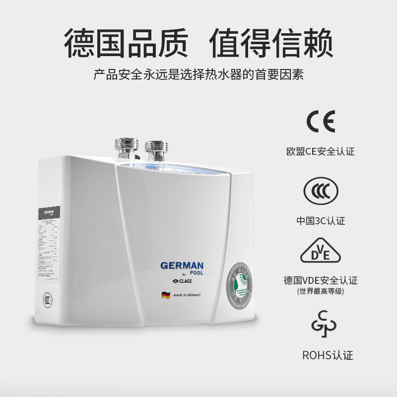 德国宝进口小厨宝是一款专为厨房、洗手间设计的即热式电热水器,体积小巧,可轻松安装于台下或橱柜内,节省空间。采用德国先进加热技术,实现3秒即热,无需等待,随时提供恒温热水,满足日常洗手、洗菜、洗碗等需求。配备多重安全保护系统,包括防干烧、防漏电、超温断电等功能,使用更安心。节能环保,按需加热,避免储水式热水器的能源浪费。外观简约精致,适配现代家居风格。无论是老房改造还是新房装修,德国宝小厨宝都是提升生活品质的贴心选择,让热水触手可及,舒适便捷每一天。