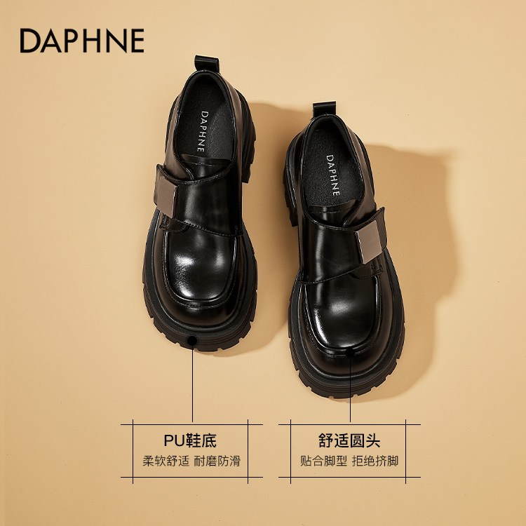 天猫达芙妮女鞋厚底乐福鞋女2025秋冬新款加绒黑色英伦小皮鞋增高单鞋