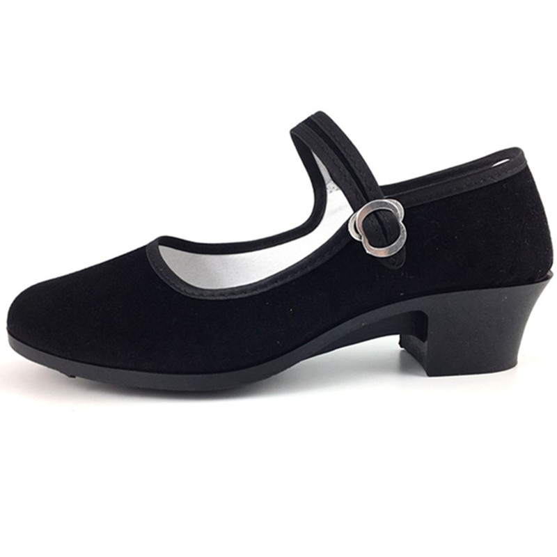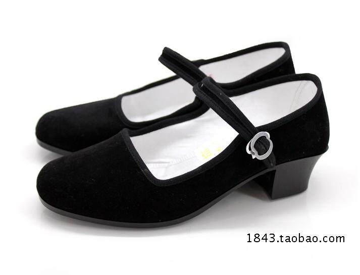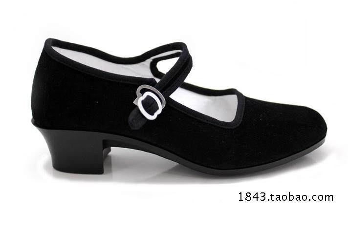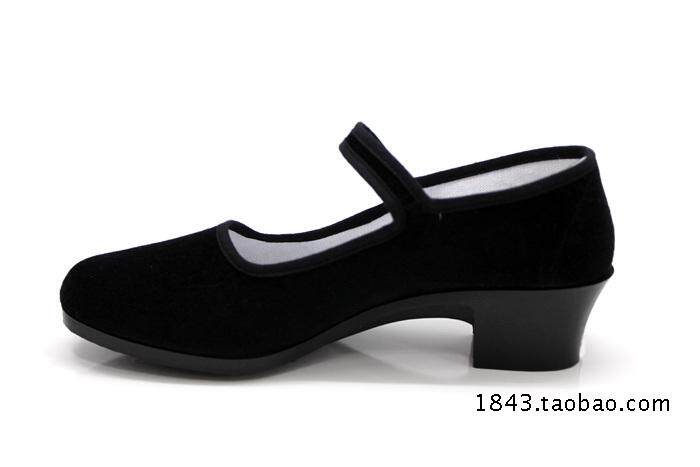 淘宝老北京布鞋广场舞蹈女鞋舒适民国风黑色平底中跟一字扣上班工作鞋