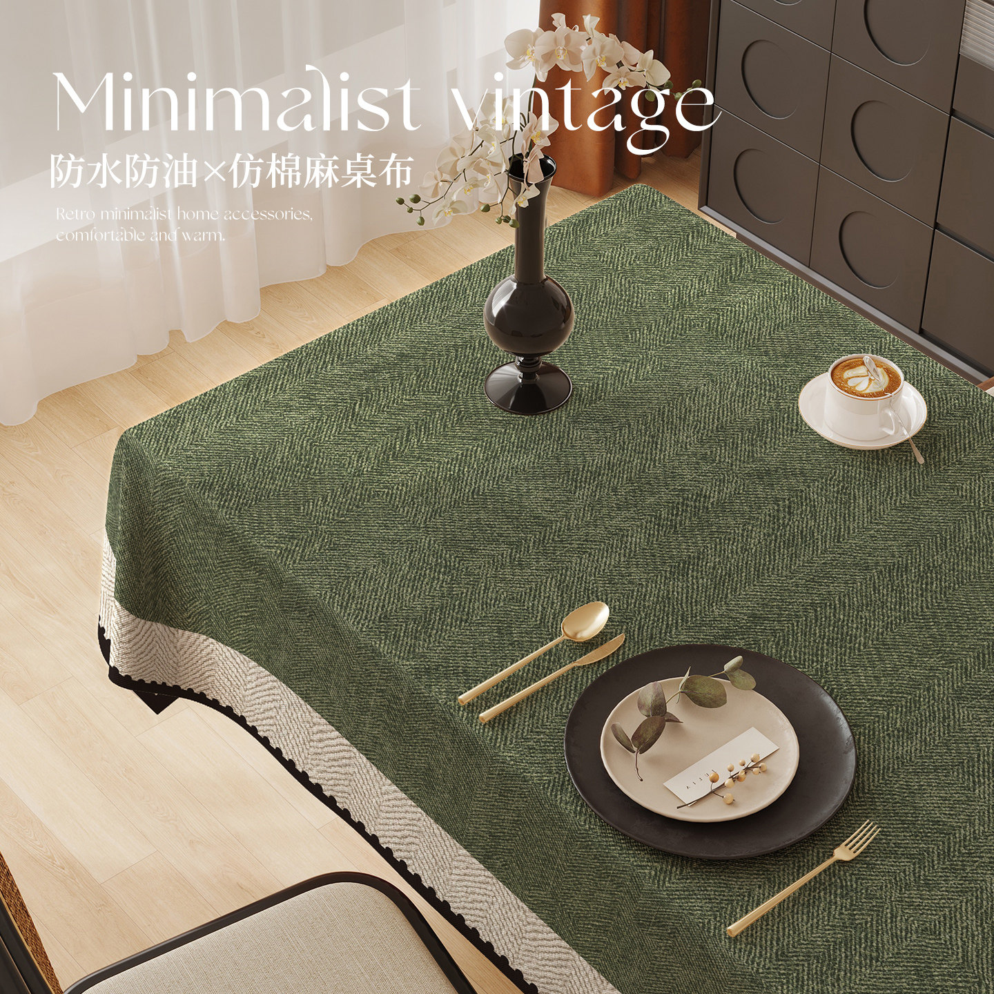 竹月阁纳米防水餐桌布布艺棉麻风格现代简约桌布加厚 台布 轻奢