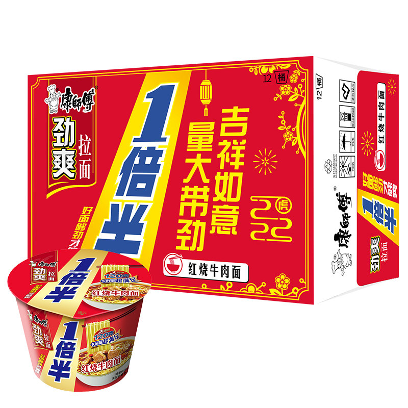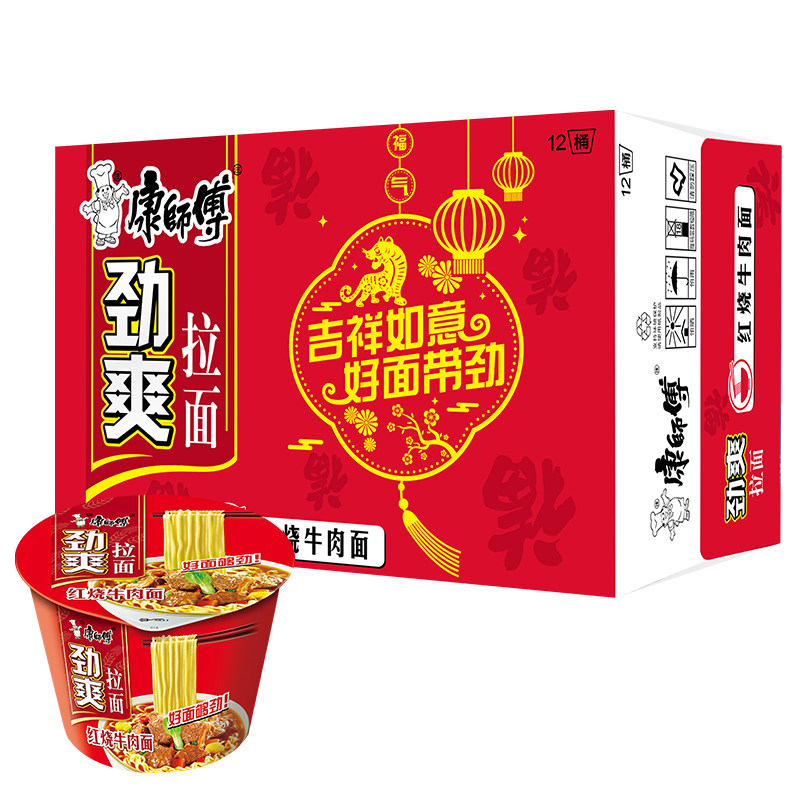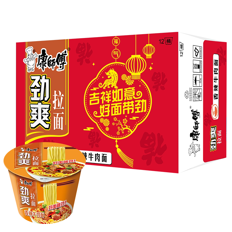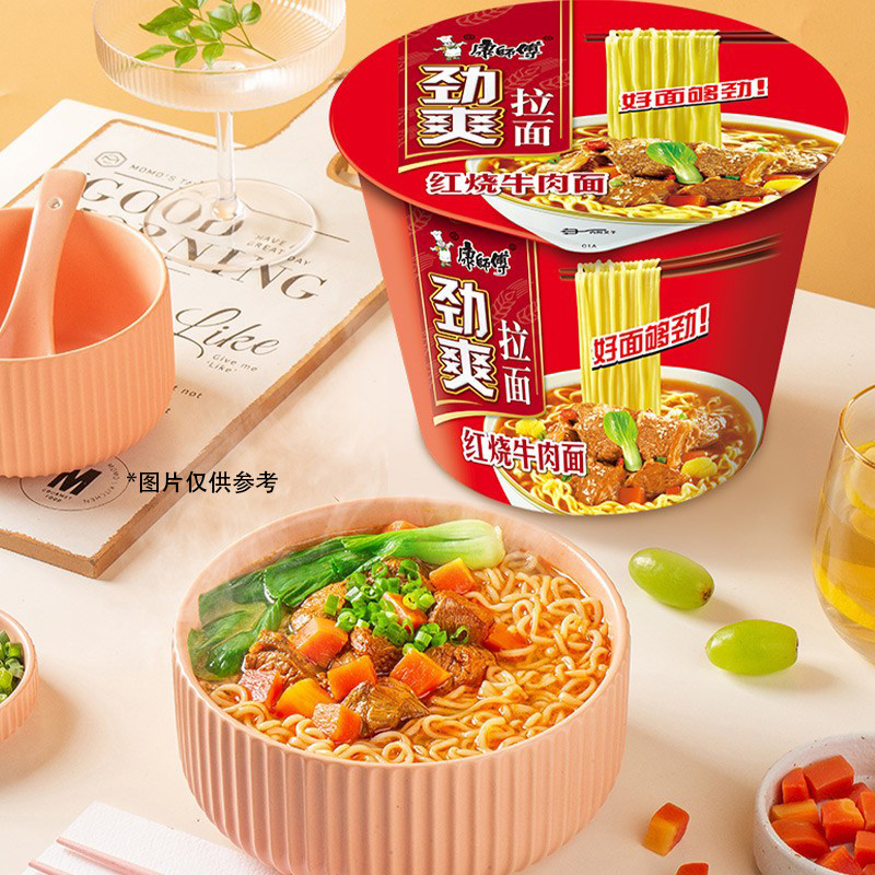 康师傅劲爽香辣红烧牛肉面是一款广受欢迎的速食泡面,融合经典红烧牛肉风味与劲爽香辣口感,汤浓味醇,面条Q弹有嚼劲。采用桶装设计,冲泡便捷,适合快节奏生活或深夜夜宵。整箱组合装更实惠,满足家庭囤货或办公室储备需求。精选优质小麦粉制成面饼,搭配香浓调味包与脱水蔬菜,还原地道中式牛肉面风味。无论是加班、旅途还是宅家时刻,一碗热腾腾的康师傅香辣红烧牛肉面,迅速唤醒味蕾,带来满足与温暖,是现代人便捷饮食的理想选择。
