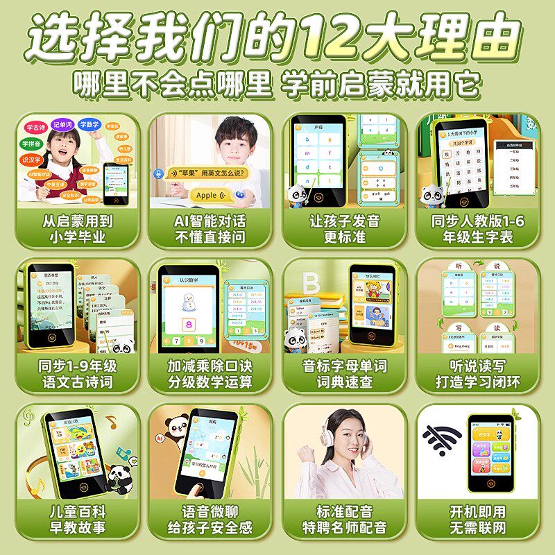 天猫儿童早教口袋学习机幼儿园到小学智能识拼音仿真手机英语2026新款