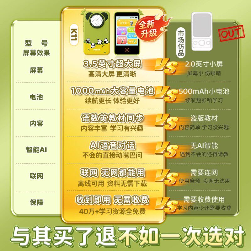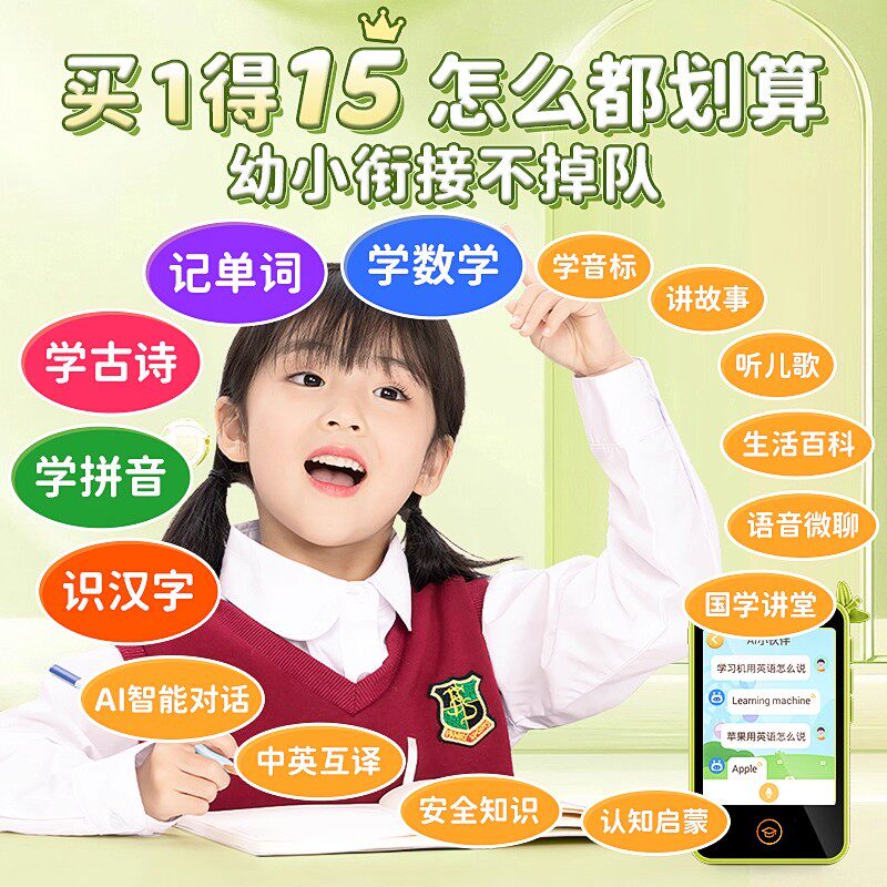 2026新款儿童早教口袋学习机,专为幼儿园至小学阶段孩子设计,集智能识拼音、英语启蒙、趣味互动于一体。仿真手机造型,小巧便携,激发孩子学习兴趣。内置标准拼音发音系统,支持点读跟读,帮助孩子掌握正确发音;英语模块涵盖字母、单词及日常对话,配合生动动画,提升语言能力。AI智能互动问答,寓教于乐,培养逻辑思维。安全环保材质,护眼屏幕,家长可远程管控使用时长。一款融合科技与教育的智能学习伴侣,助力孩子赢在起跑线。