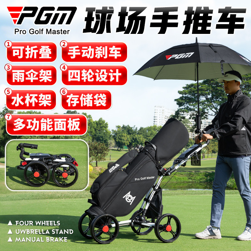 天猫PGM高尔夫球包手推车可折叠青少年成人四轮手拉车水壶伞架球包车