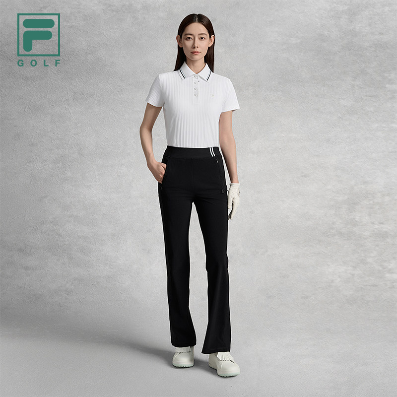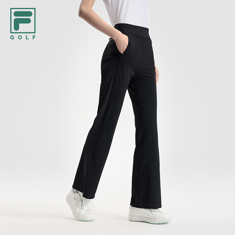 天猫FILA 斐乐官方女士针织长裤2025秋新款高尔夫运动修身防晒喇叭裤