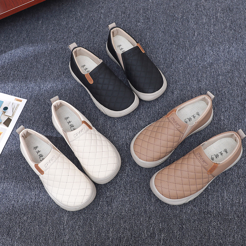 淘宝秋季新款女鞋老北京布鞋皮面防水透气妈妈鞋休闲一脚蹬防滑懒人鞋