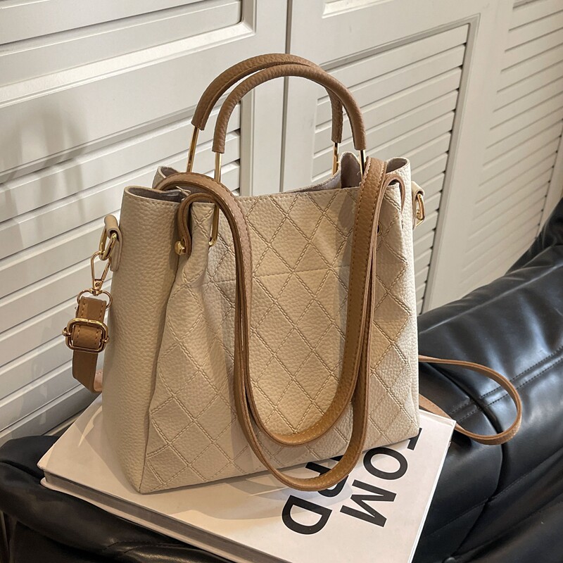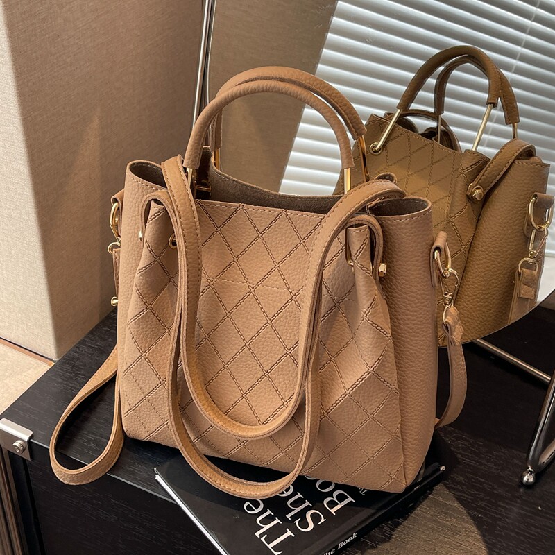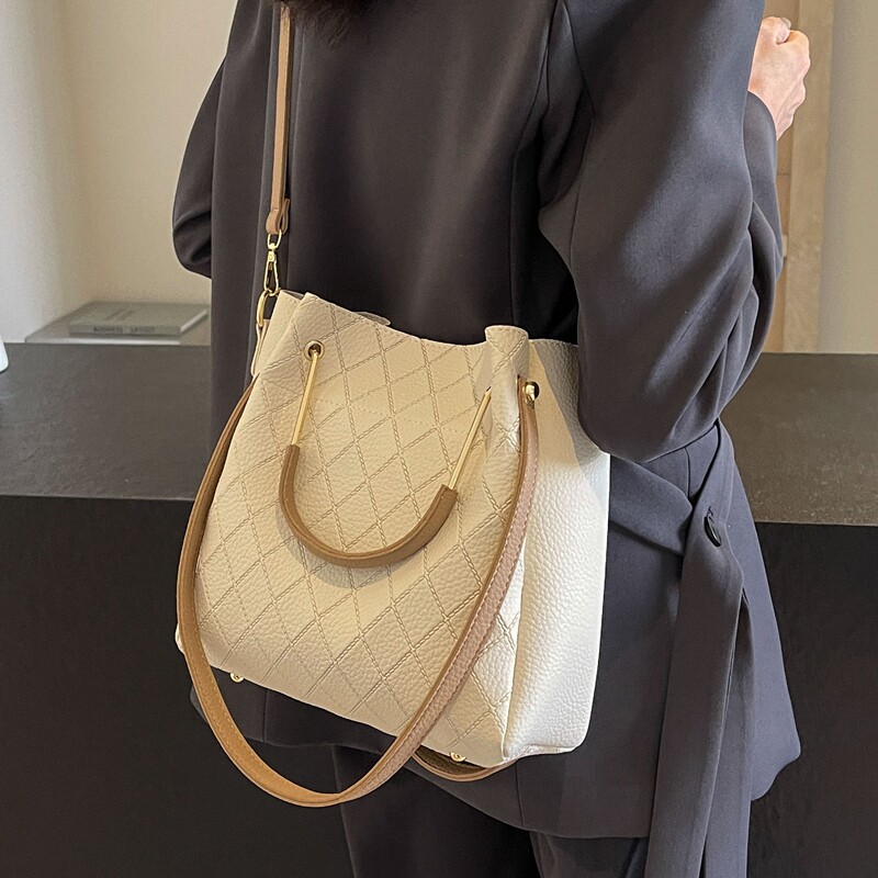 2026年新款大容量女士单肩包,专为都市通勤女性设计,融合实用与时尚。采用优质耐磨面料,质感高级,秋冬百搭,轻松驾驭职场与日常出行。水桶包型设计,容量充裕,可容纳A4文件、平板、雨伞等通勤必需品。多隔层收纳,井然有序;可调节肩带支持斜挎、单肩或手提多种背法,舒适便捷。简约线条搭配精致金属配件,低调中彰显品味,适配大衣、西装、针织衫等多种秋冬穿搭。无论是上班、出差还是休闲约会,这款包都是提升气质与效率的理想伴侣,实用与美感兼具,尽显现代女性自信风采。