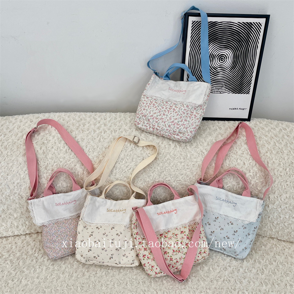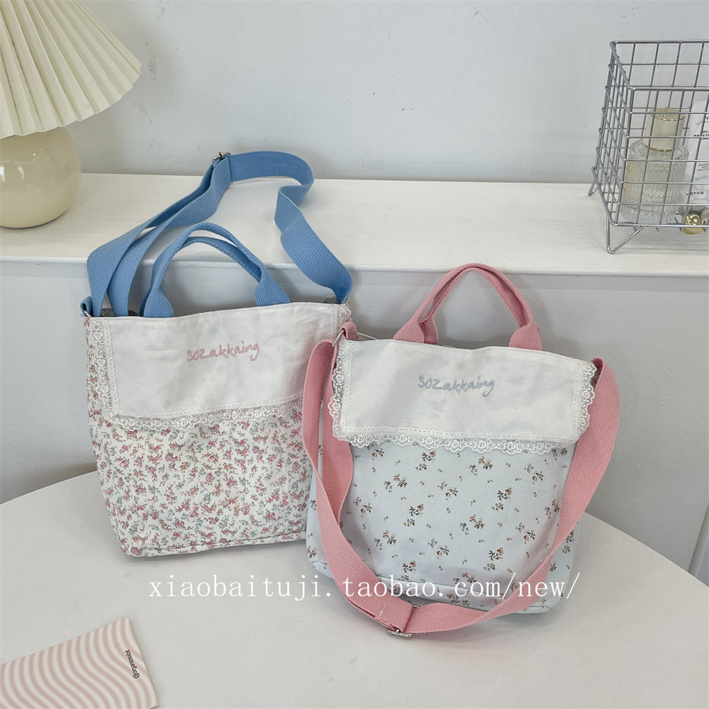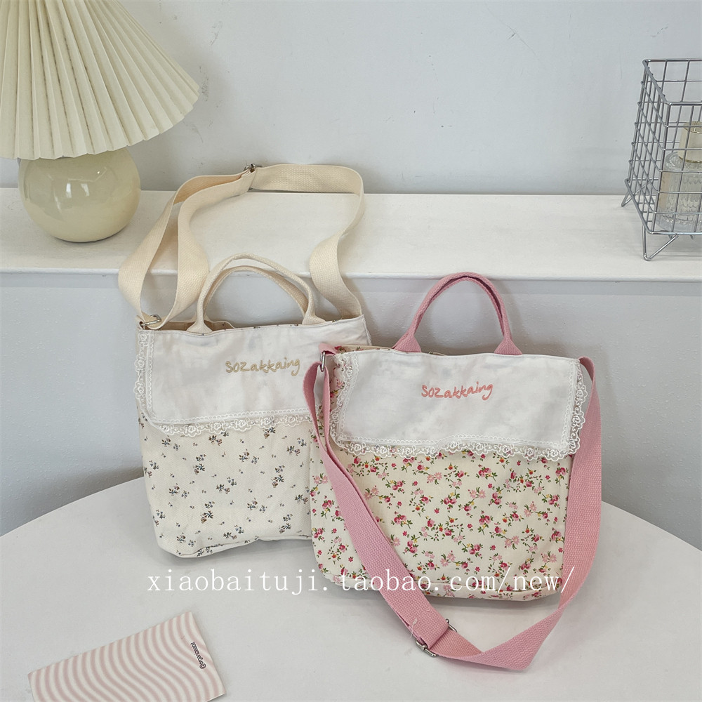 淘宝小白兔几春夏田园风拼接碎花手提帆布包单肩斜挎包大容量通勤手拎