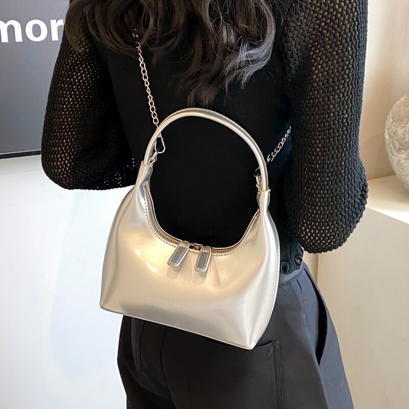 淘宝小众银色包包女秋冬2026新款流行手提月牙包爆款高级感链条斜挎包