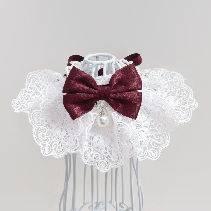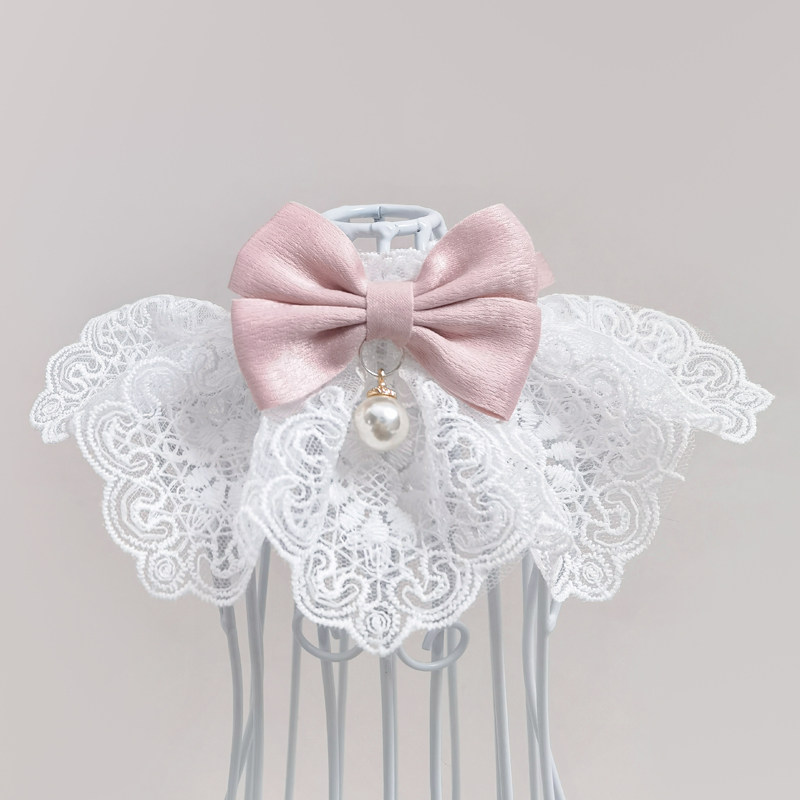 淘猫咪珍珠爱心项链狗狗宠物蝴蝶结项圈挂饰可爱复古围脖围巾装饰品