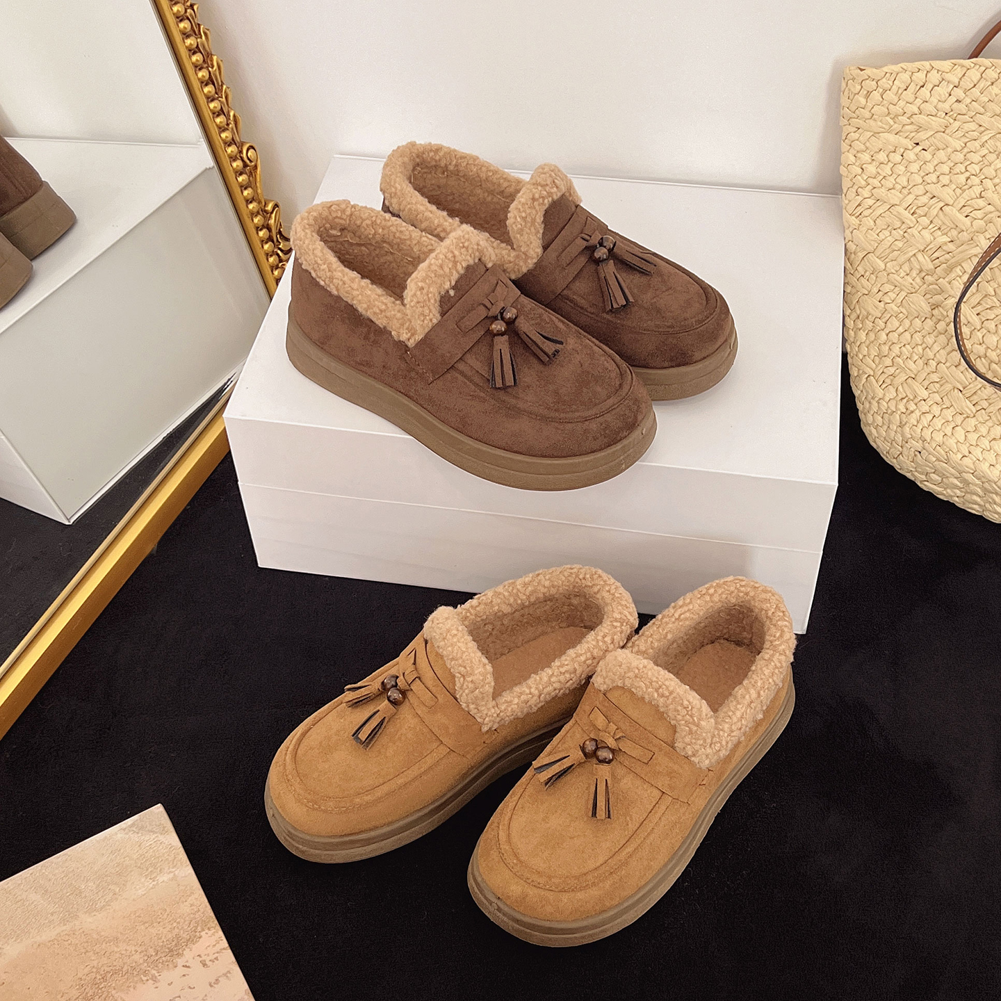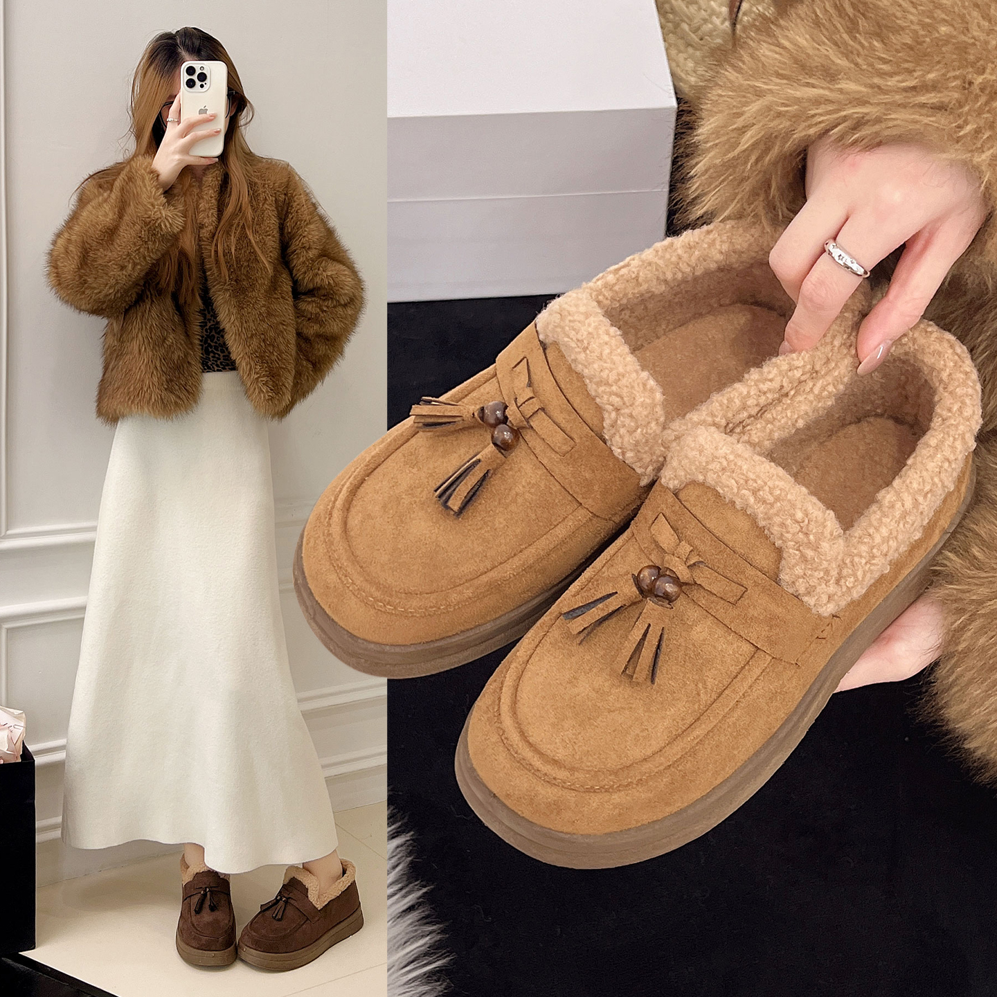 淘宝老北京布鞋女棉鞋加绒保暖棉鞋冬季加厚乐福鞋豆豆勃肯鞋毛毛鞋子