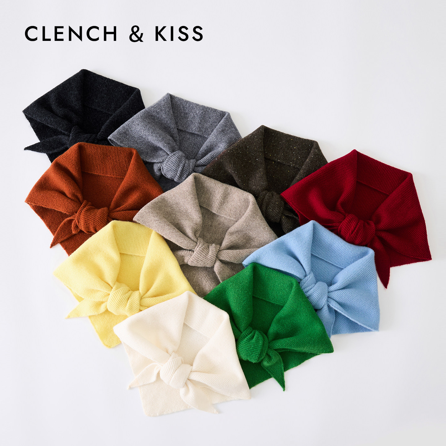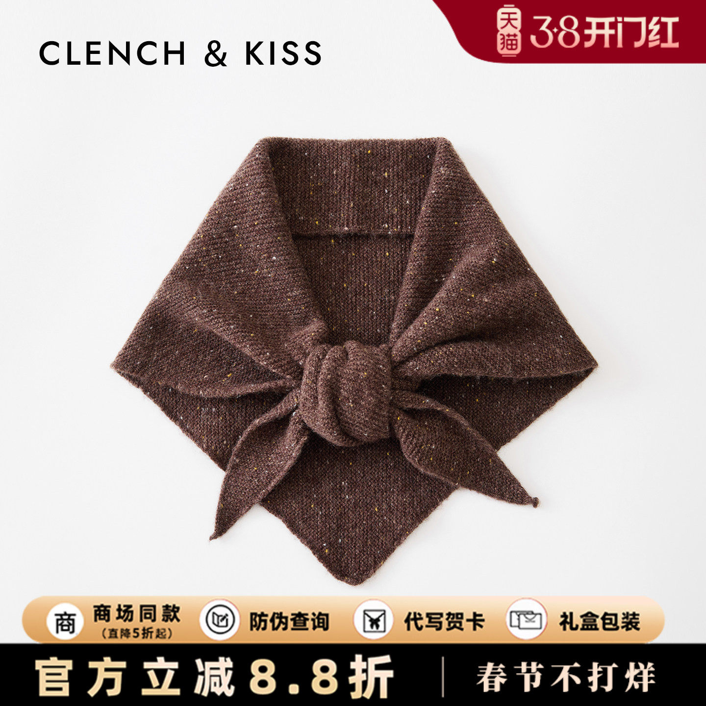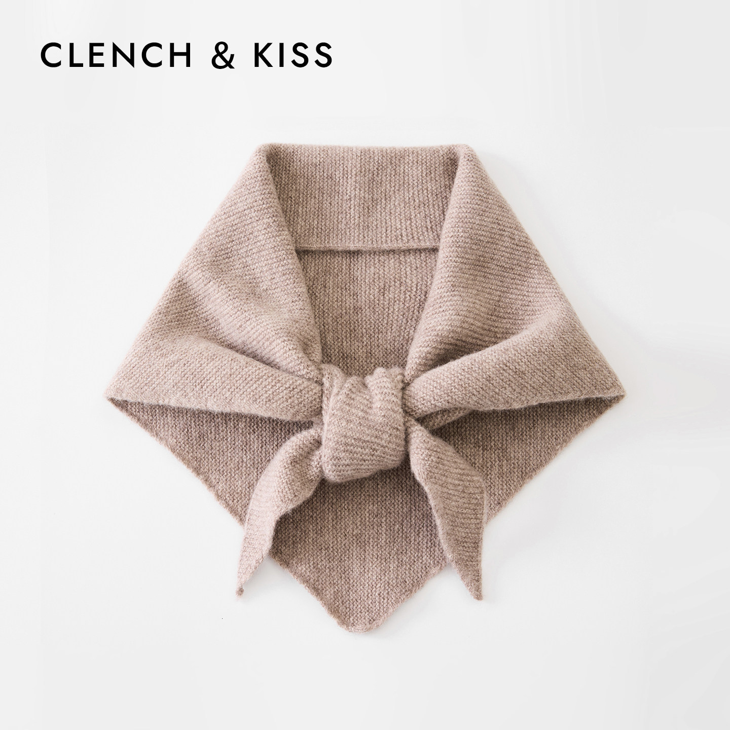 天猫Clench Kiss官方100%羊毛围巾秋冬季三角巾纯色围脖女小披肩韩系
