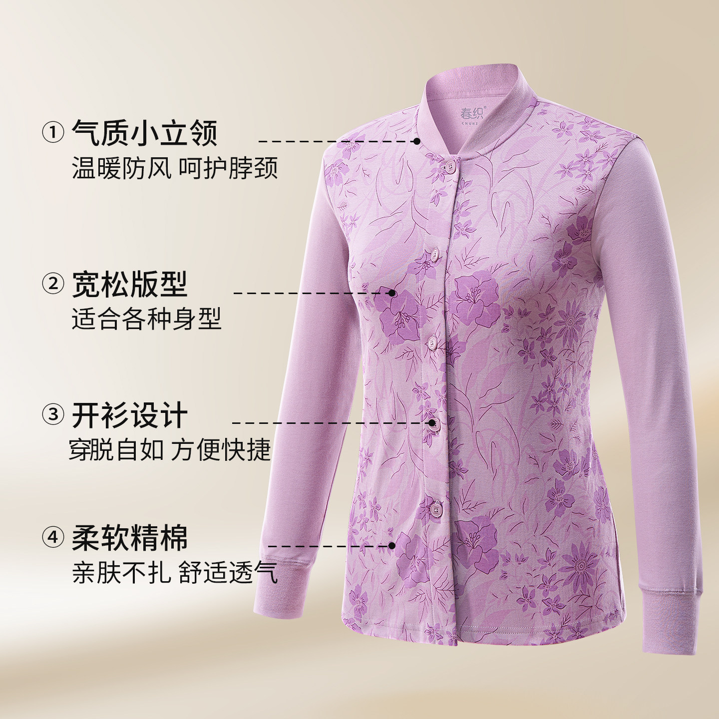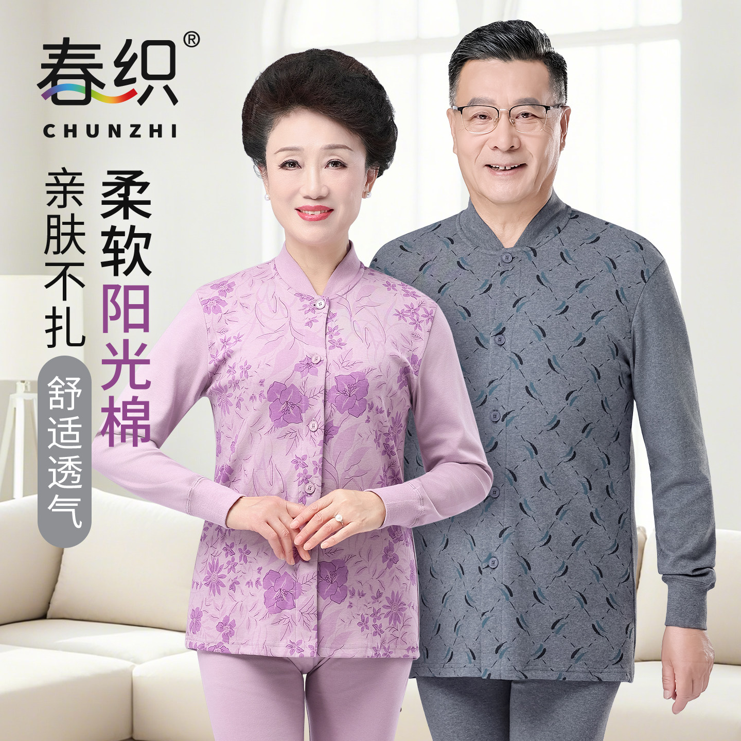 天恒源祥中老年人保暖内衣男加厚加绒女士加大码开衫秋冬季防寒套装