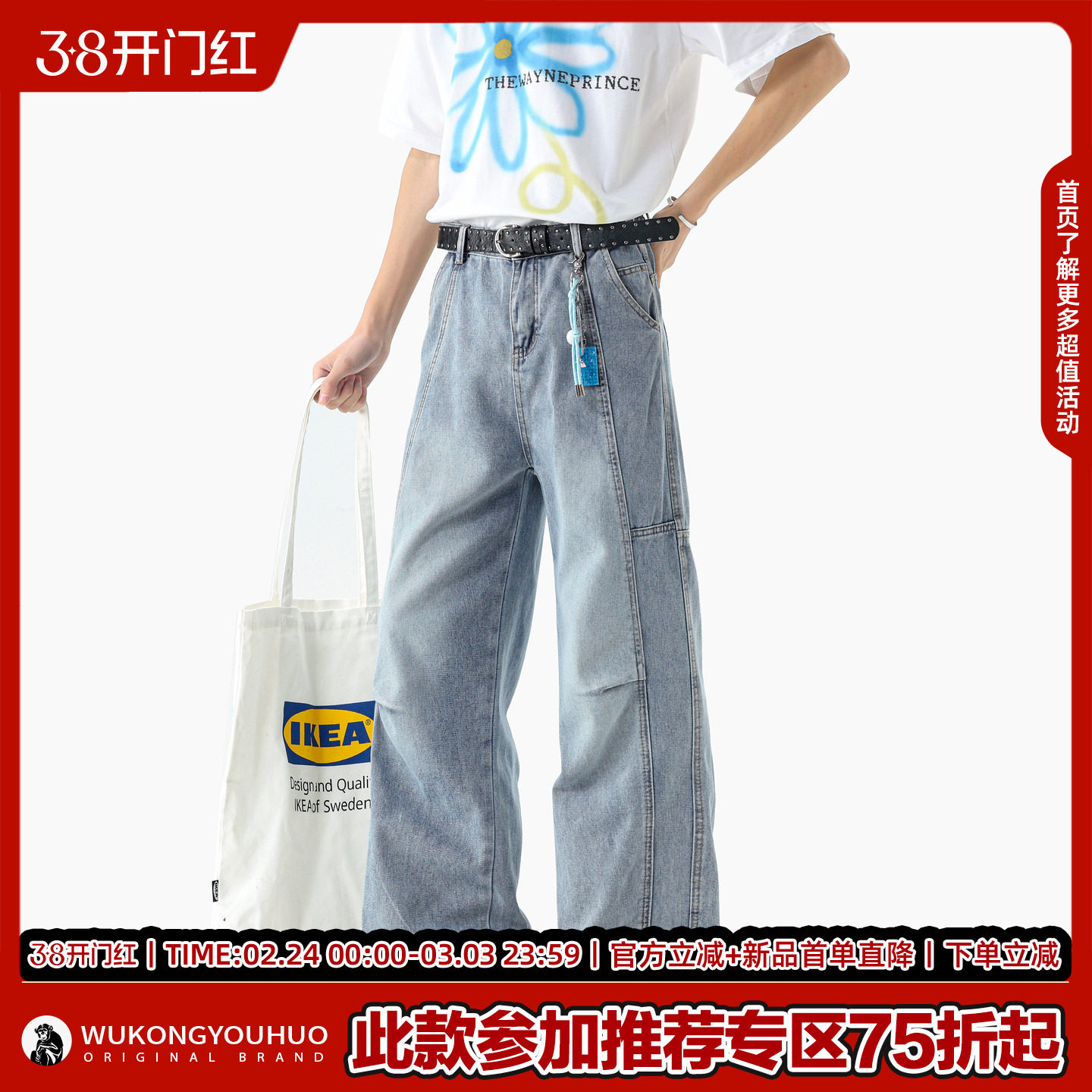 淘宝悟空有货潮牌美式水洗做旧直筒牛仔裤男宽松潮流百搭阔腿休闲长裤