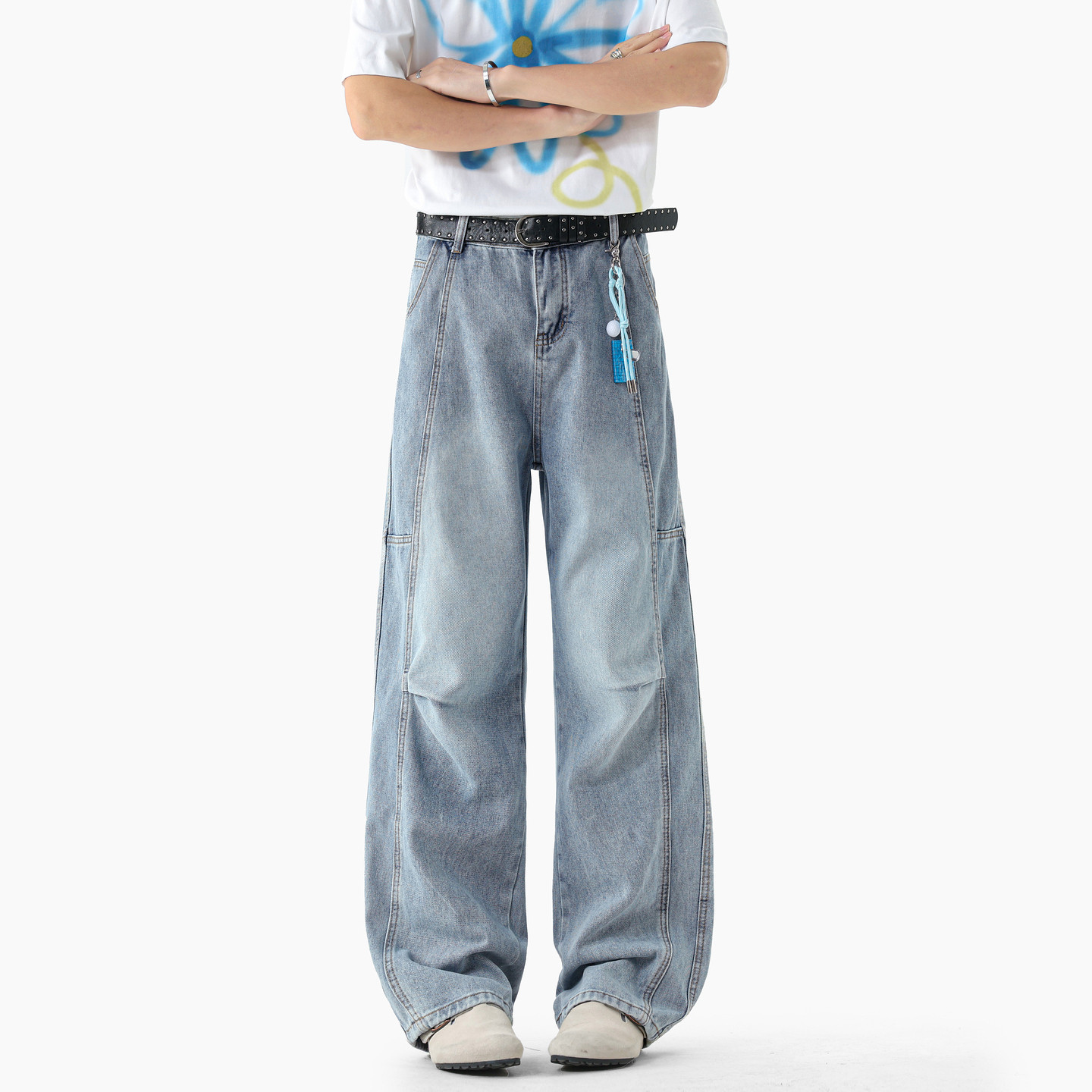 天HomePanda复古水洗蓝色天丝牛仔裤男夏季薄款美式宽松阔腿A字长裤