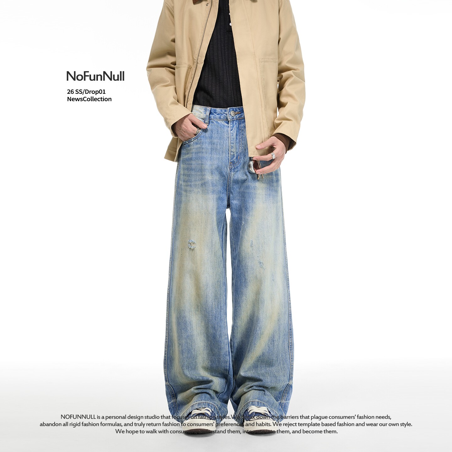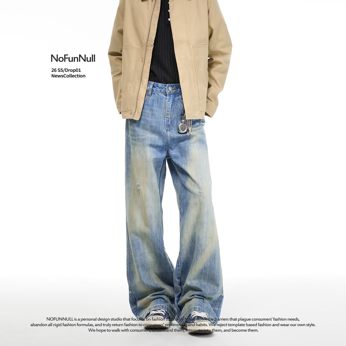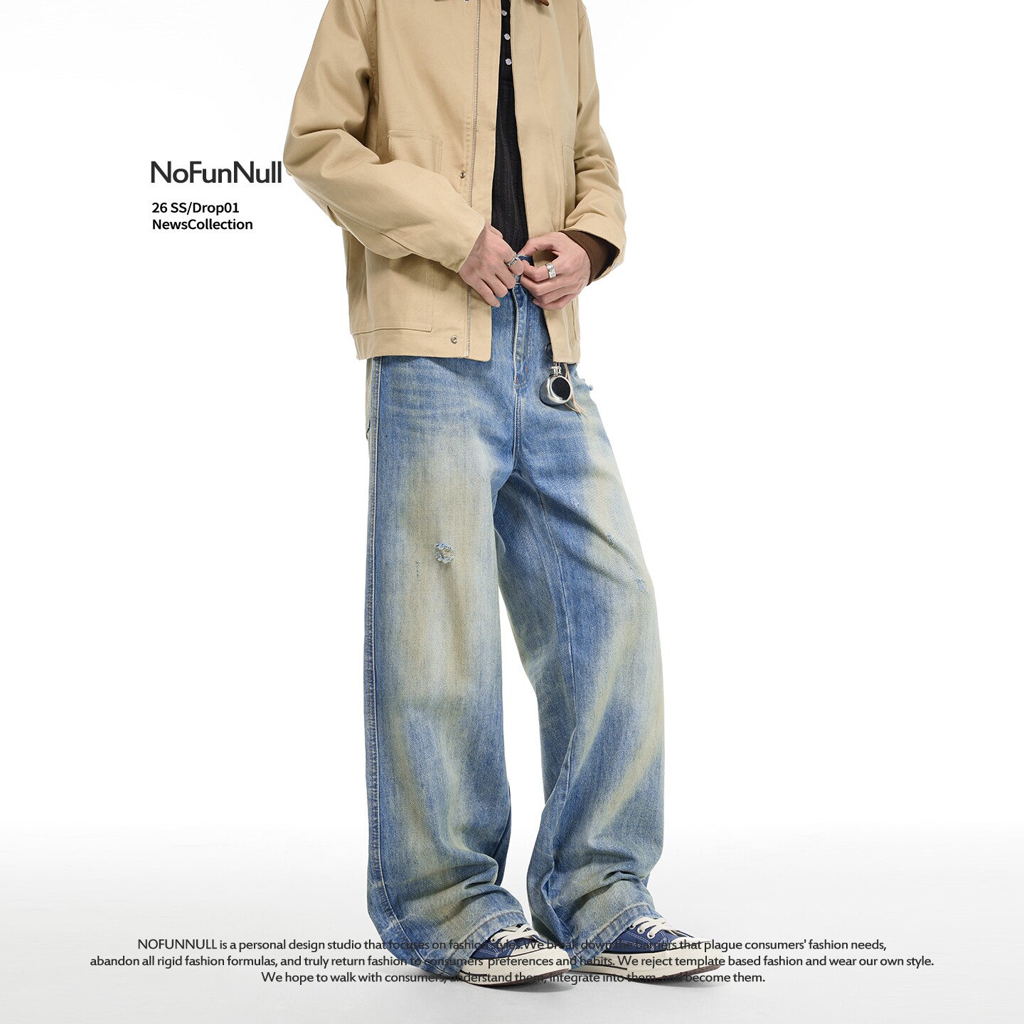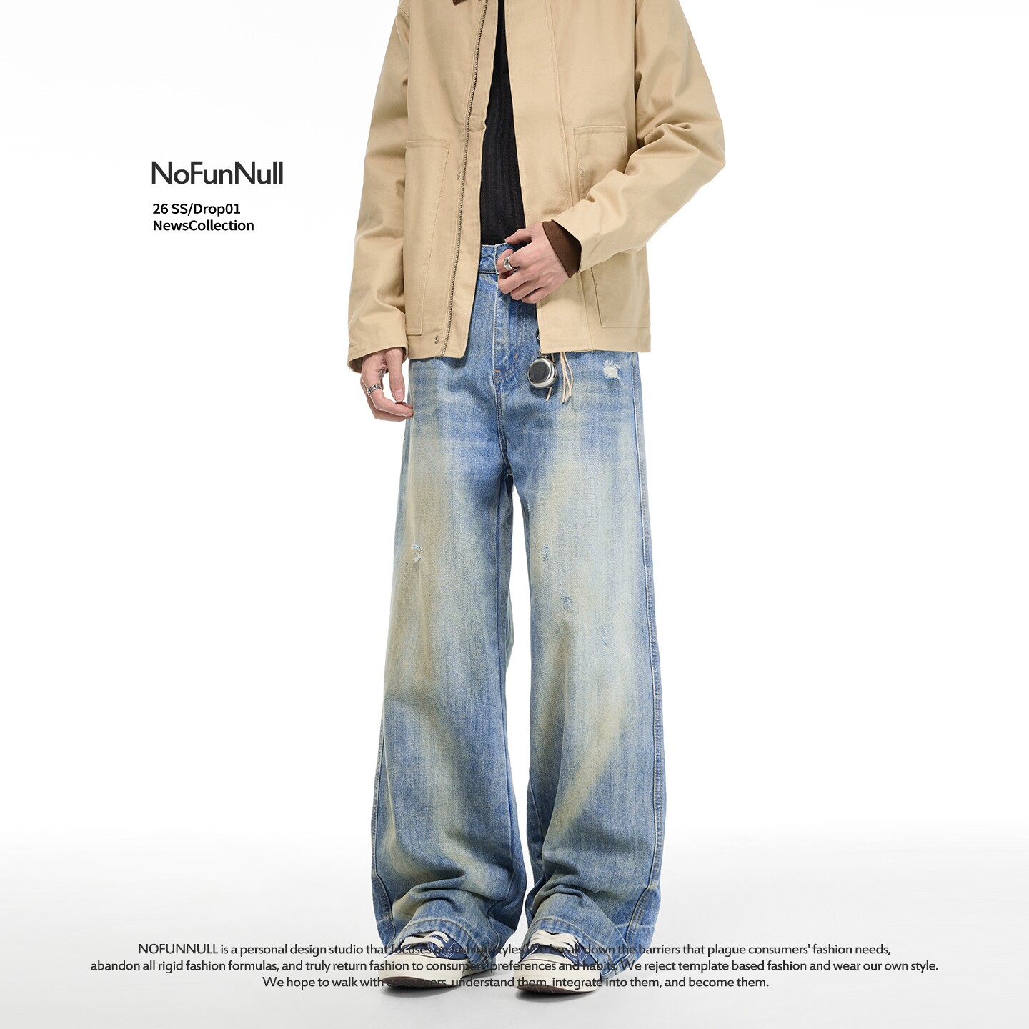 淘宝NOFUNNULL 美式黄泥水洗做旧牛仔裤男女春季破洞直筒Cleanfit长裤