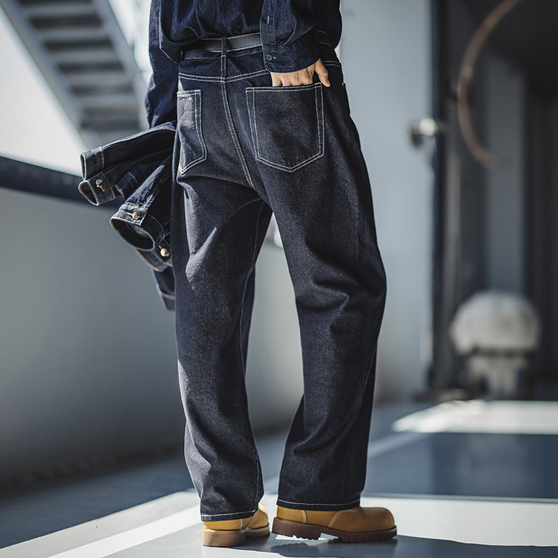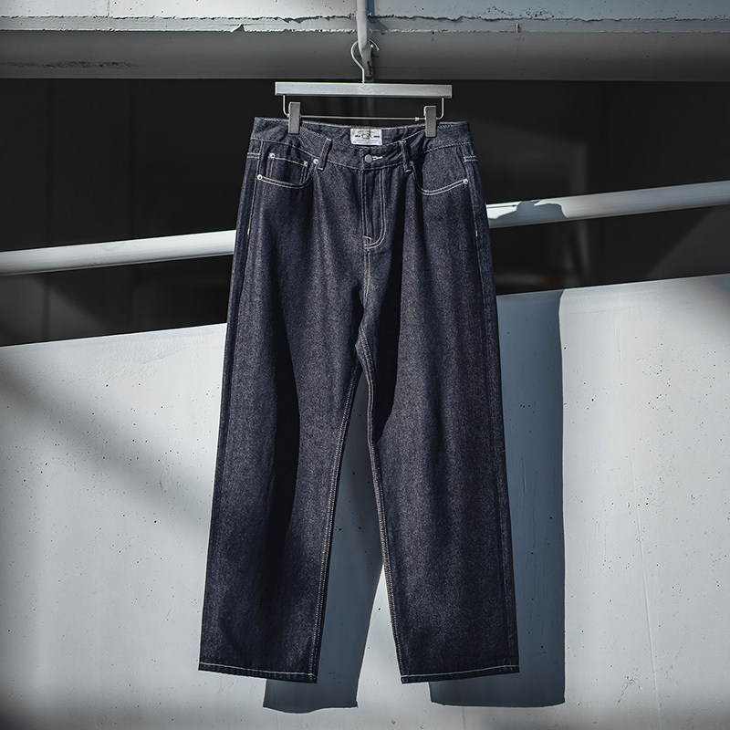 淘宝MRA男装美式复古重磅原牛色直筒牛仔裤阔腿宽松垂感深蓝牛男春秋