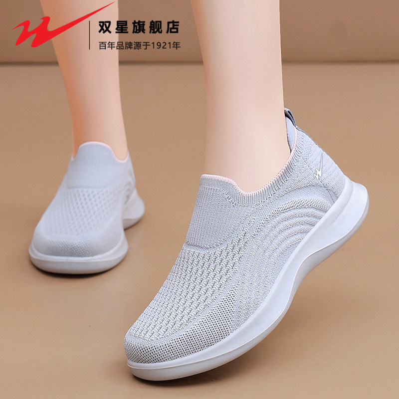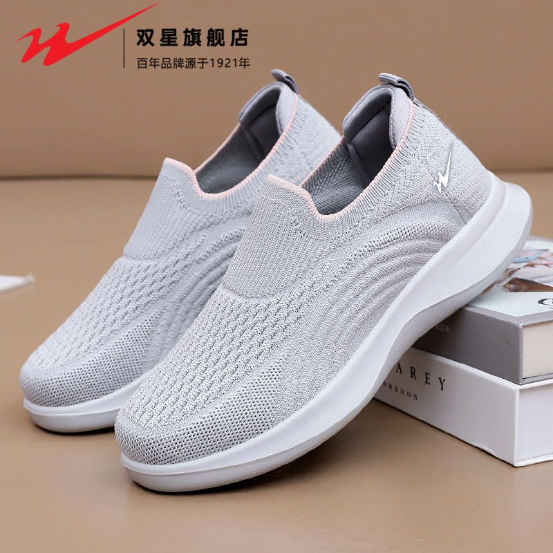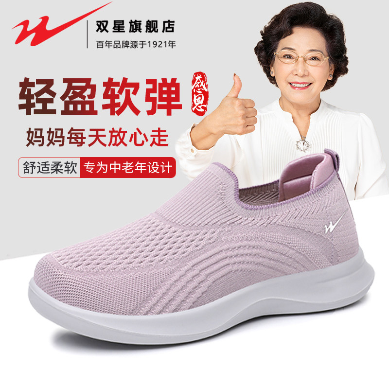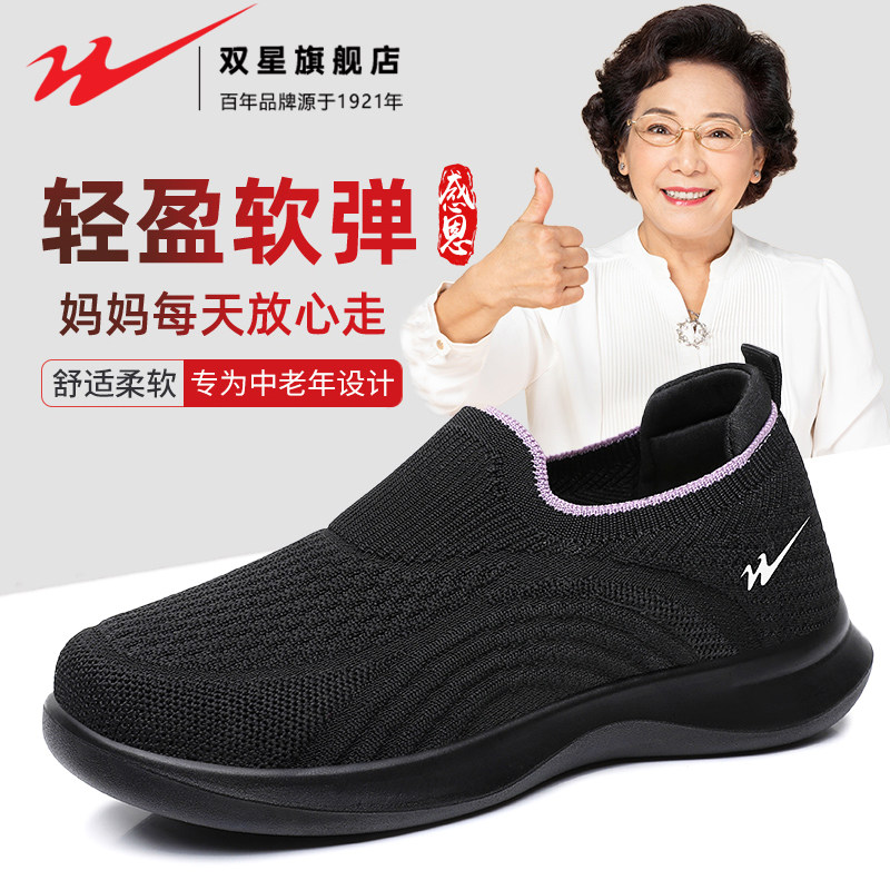 天猫双星妈妈鞋女秋季飞织透气防滑软底健步鞋老北京布鞋中老年休闲鞋